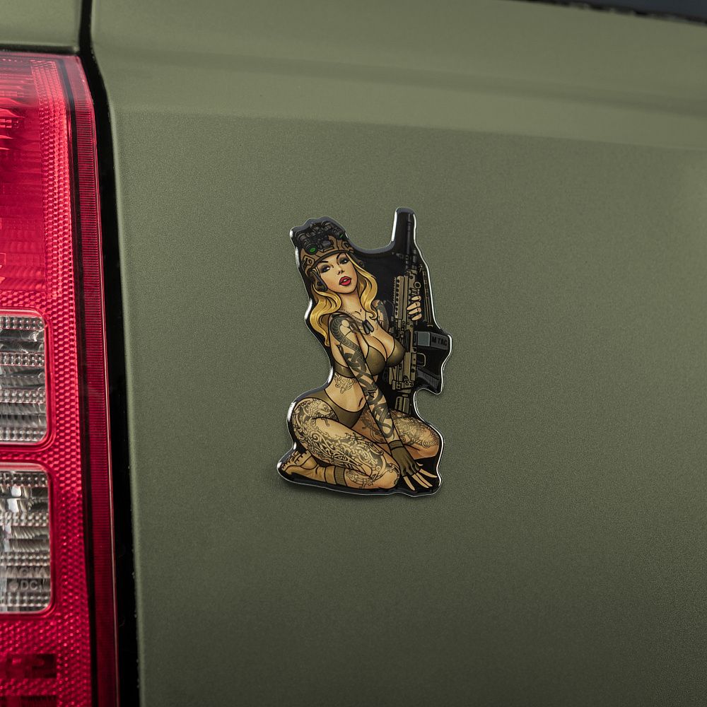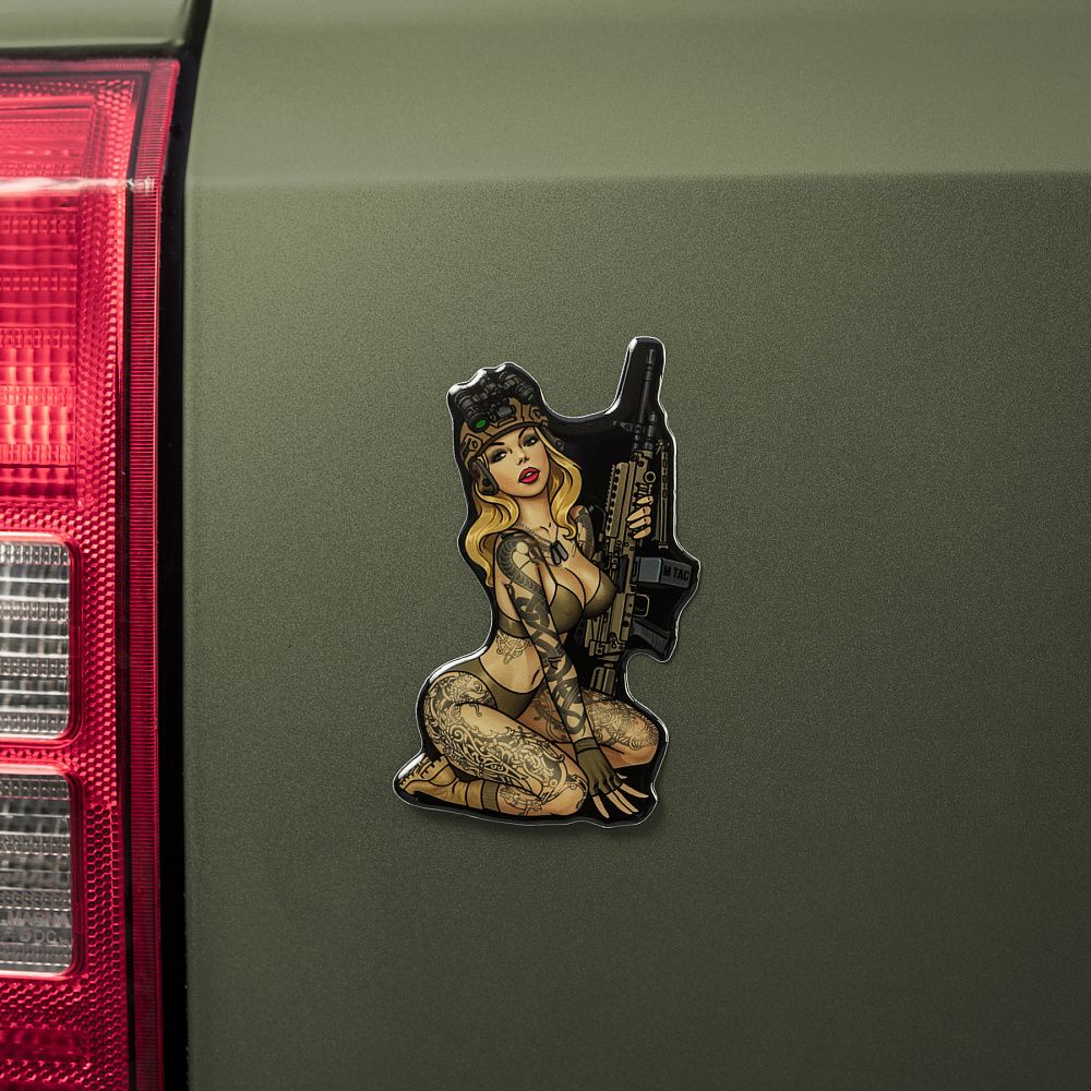 Особливої популярності даний вид мистецтва набув у часи Другої світової війни, коли американці з красунями на бортах воювали за демократію, відстоюючи цінності свободи й незалежності. Надихнувшись американською Pin-Up культурою часів Другої світової війни, бренд М-Тас продовжує лінійку Tactical Girl та презентує вам ще одну красуню, тепер у вигляді наклейки.
