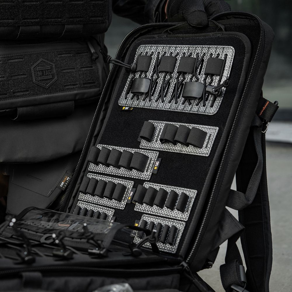 Зовнішня частина органайзера виконана зі зносостійкого матеріалу Oxford, а внутрішня — з велкро-полотна. Також, органайзер додатково укріплений термопластичним композитом Tegris та матеріалом EVA піна, які в комбінації забезпечують міцність органайзера та пом’якшують можливі ударні навантаження.