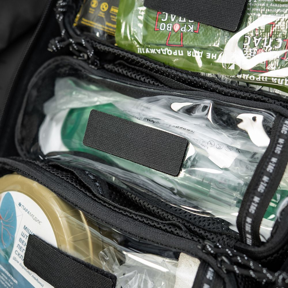 Внутрішня кишеня рюкзака виготовлена з велкро-полотна, на яке за потреби можна прикріпити додаткові модульні вставки. Кишеня оснащена знімним органайзером для розміщення ампул та необхідного медичного обладнання.