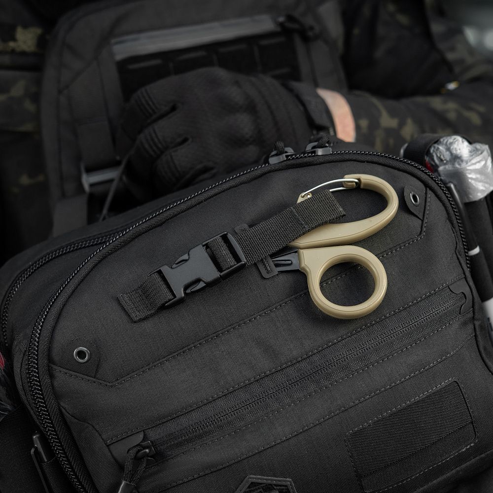 Зверху фронтальної частини рюкзака — розташований інтегрований тримач для медичних ножиць, виготовлений з інноваційного матеріалу Hypalon та стропи Murdock. Тримач застібається на фастекс корейської компанії Woojin. Зверху та знизу передньої частини рюкзака також розташовані спеціальні люверси, призначені для кріплення страхувального шнура, або ж паракорду (для кріплення додаткового спорядження)