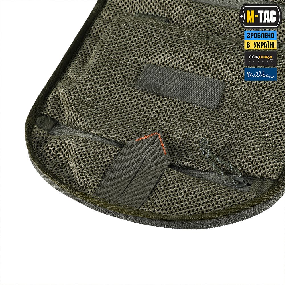 Зовнішня частина органайзера виконана зі зносостійкого матеріалу Oxford, а внутрішня — з велкро-полотна. Також, органайзер додатково укріплений термопластичним композитом Tegris та матеріалом EVA піна, які в комбінації забезпечують міцність органайзера та пом’якшують можливі ударні навантаження.