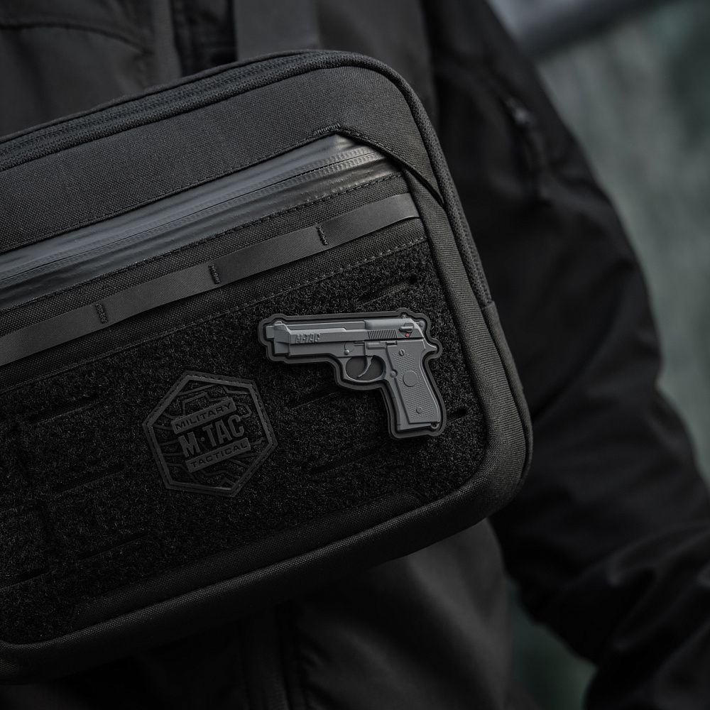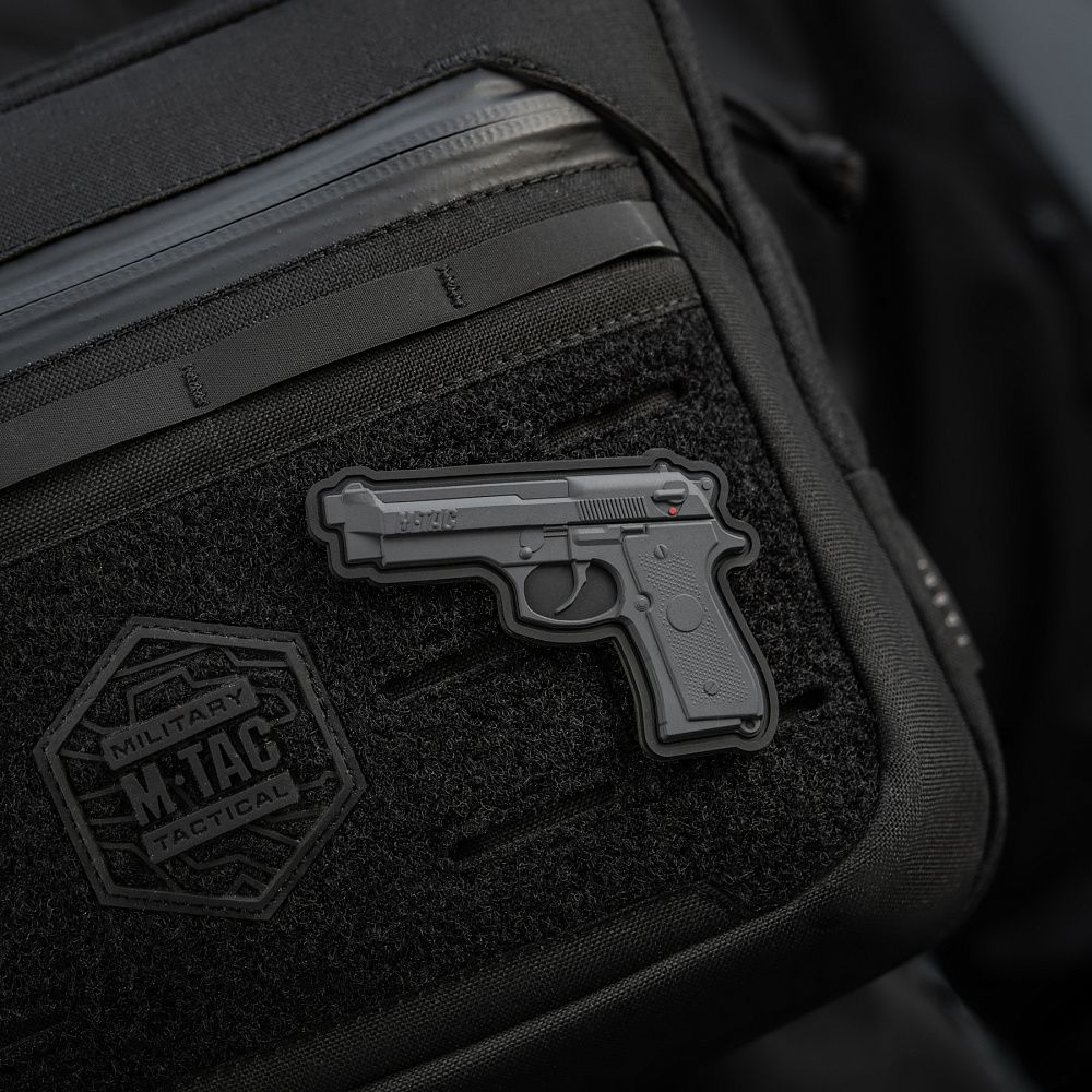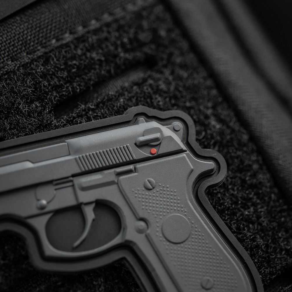 Патч виконаний у формі легкого пістолета Beretta M9 (також відомого як M9) розробленого італійською компанією Beretta для використання Збройними силами США. M9 відрізняється високою надійністю та точністю, що підтверджується його тривалою експлуатацією в бойових умовах. А завдяки конструкції та матеріалам, Beretta M9 здатен витримувати екстремальні температури і забезпечувати стабільну роботу навіть у складних умовах.