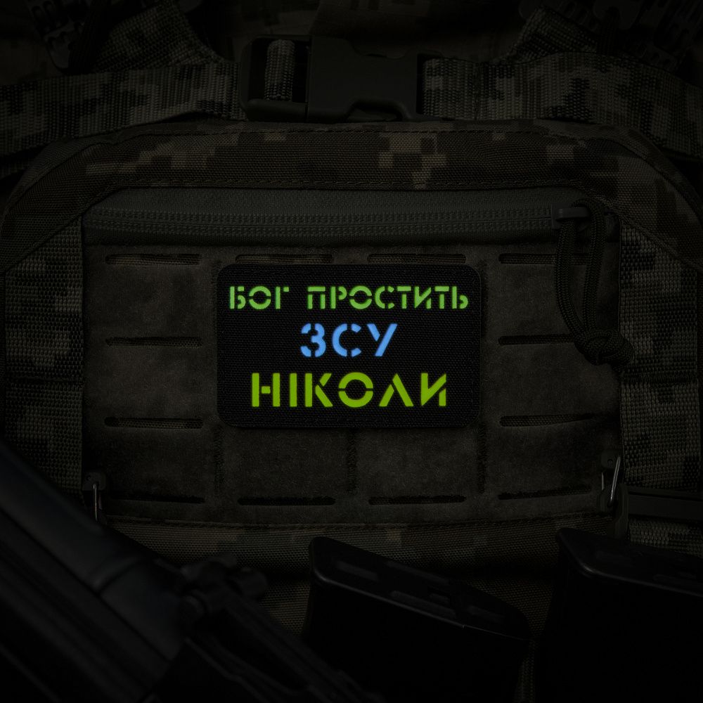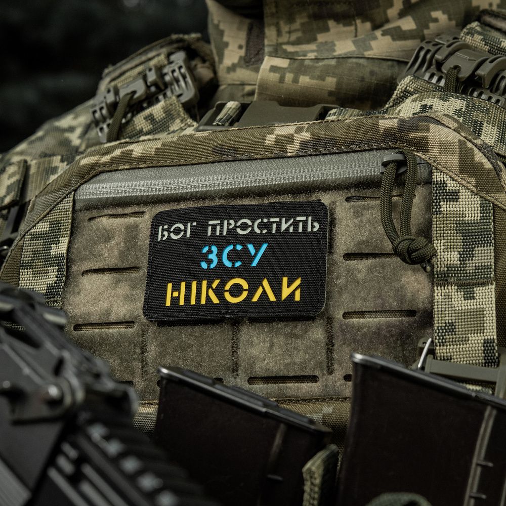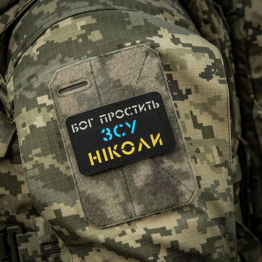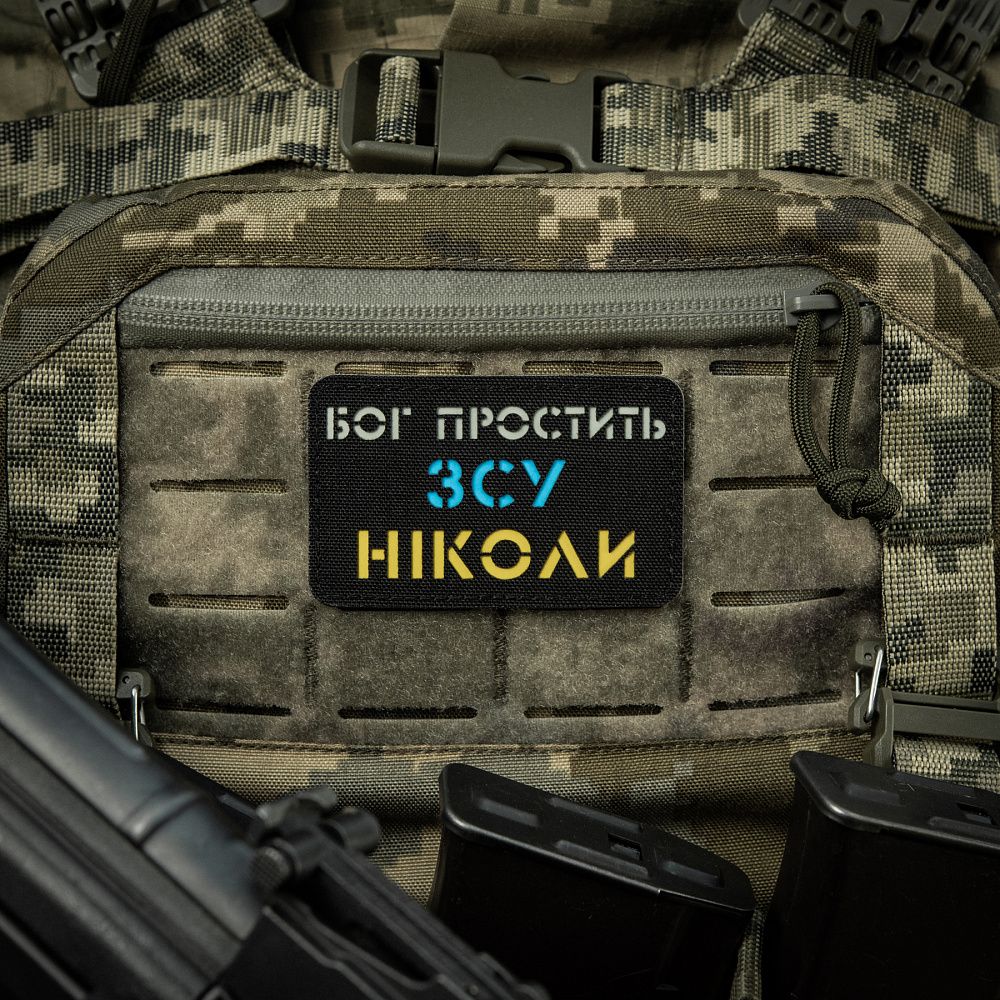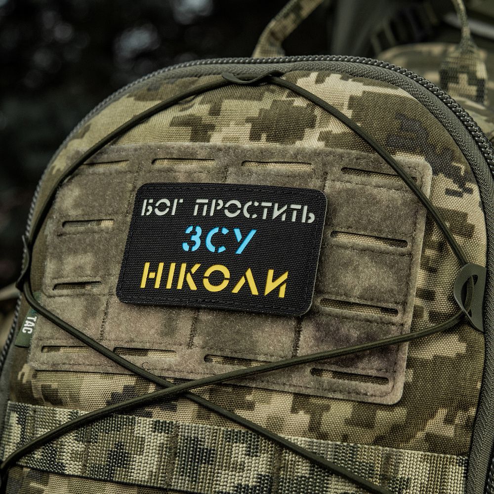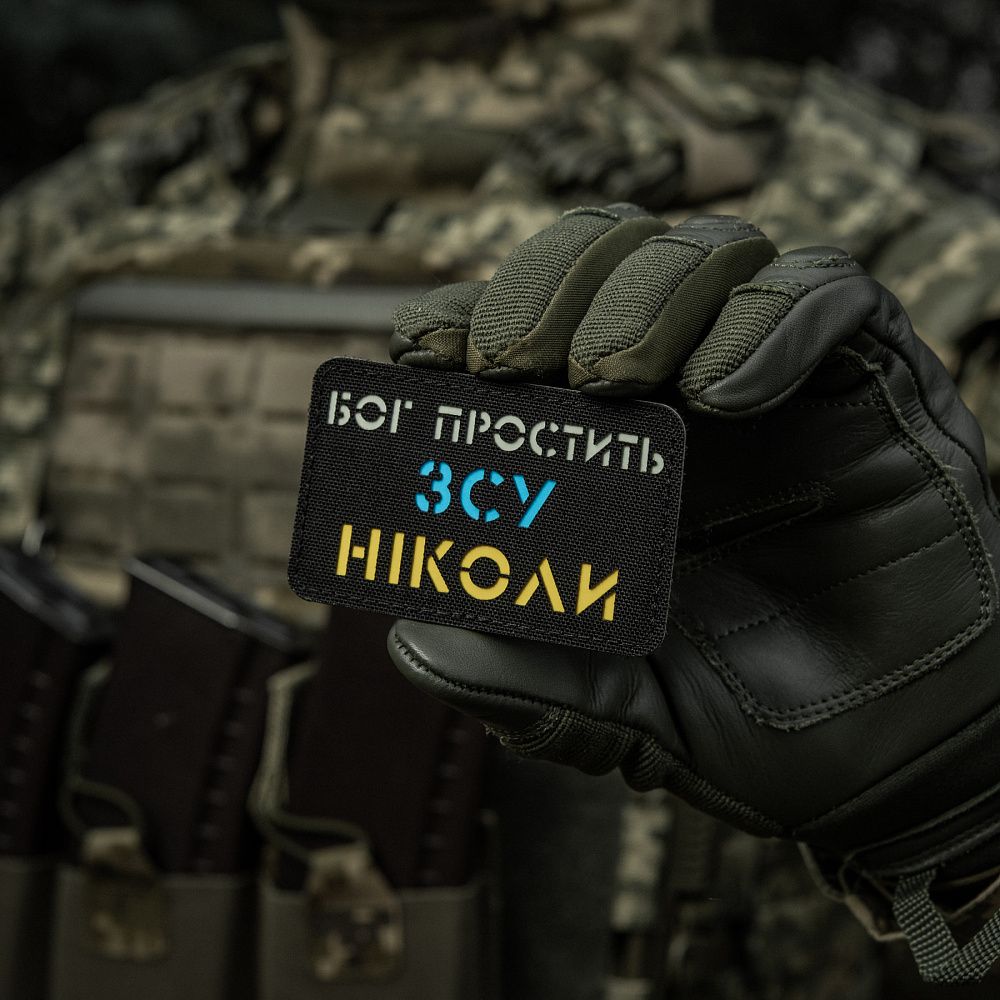 M-Tac нашивка Бог простить, ЗСУ ніколи Black/Yellow/Blue/GID