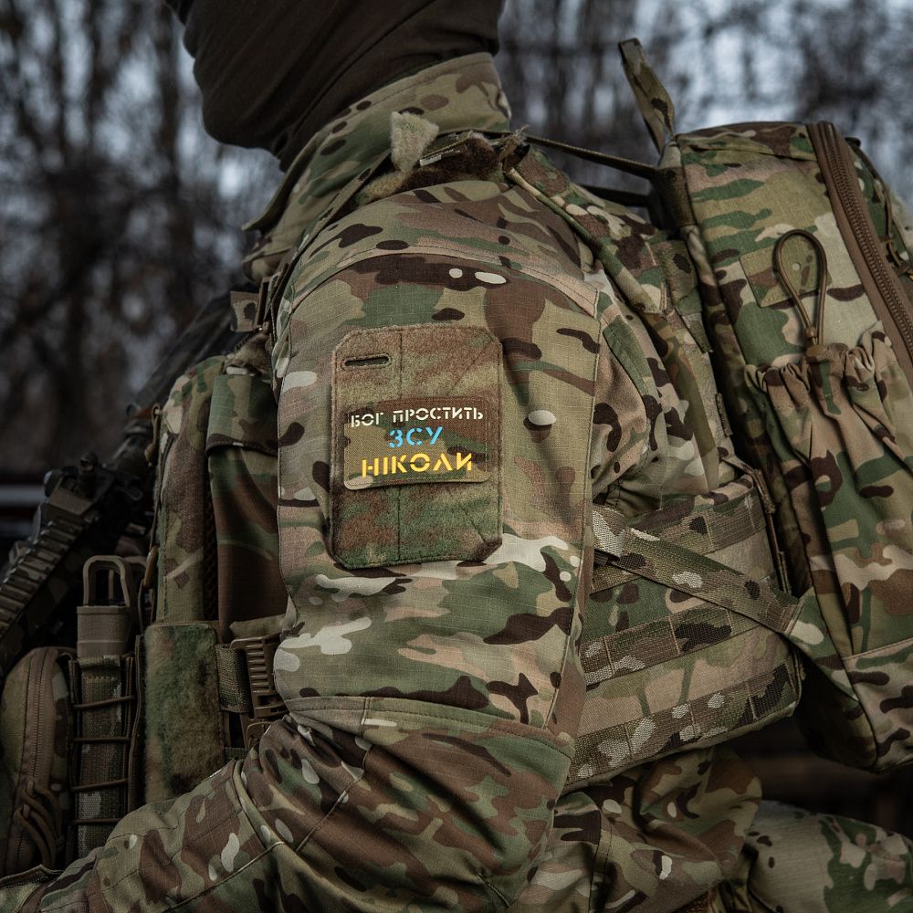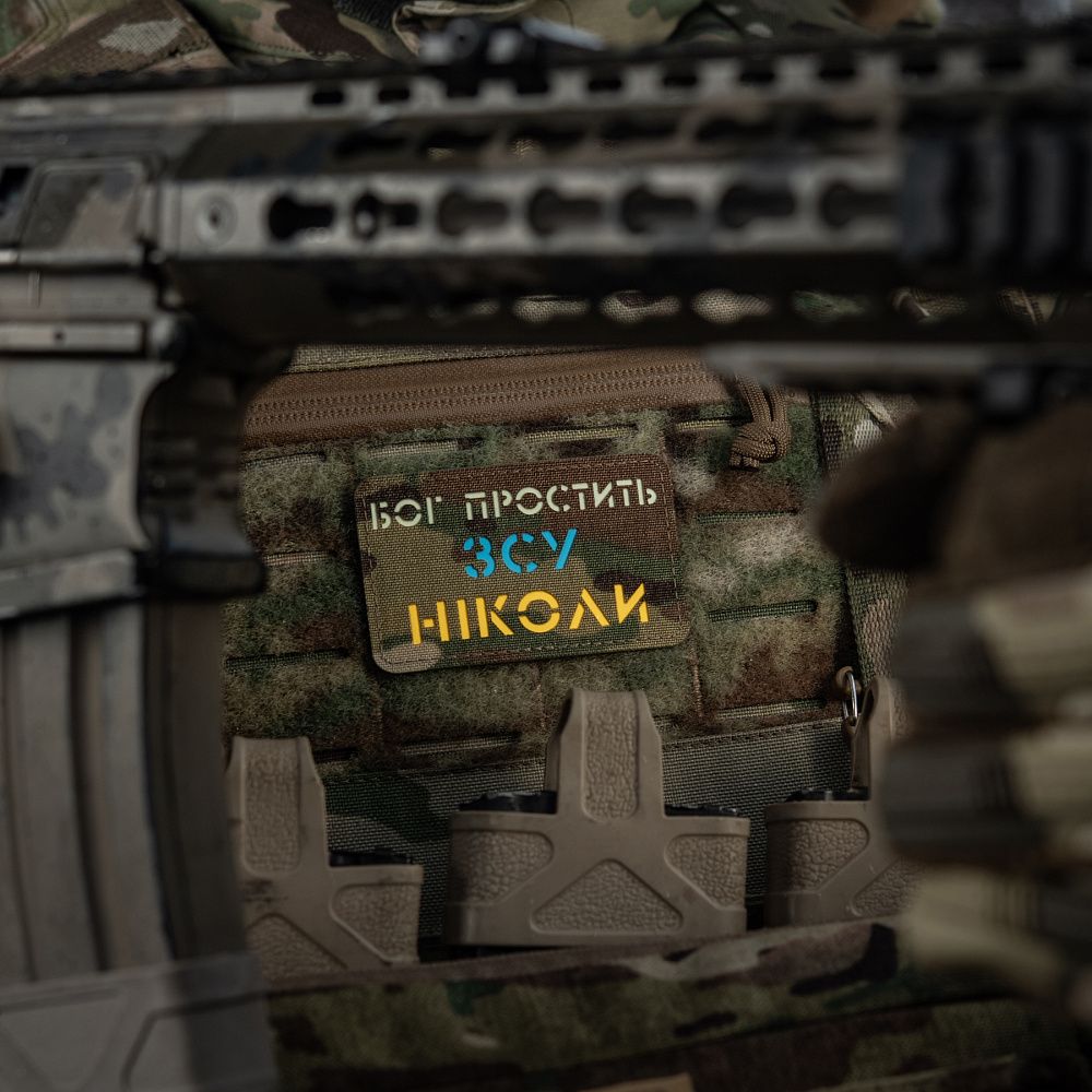 M-Tac нашивка Бог простить, ЗСУ ніколи Multicam/Yellow/Blue/GID