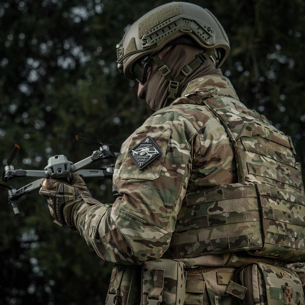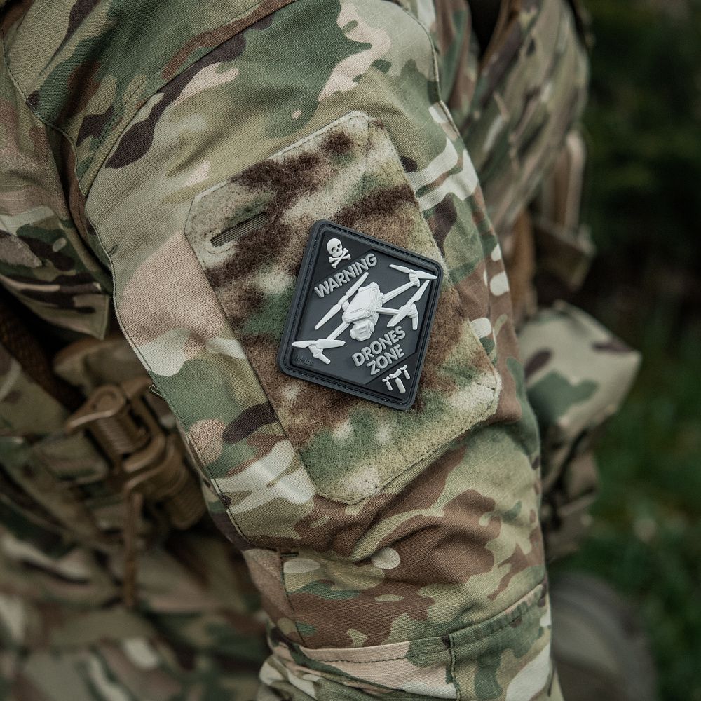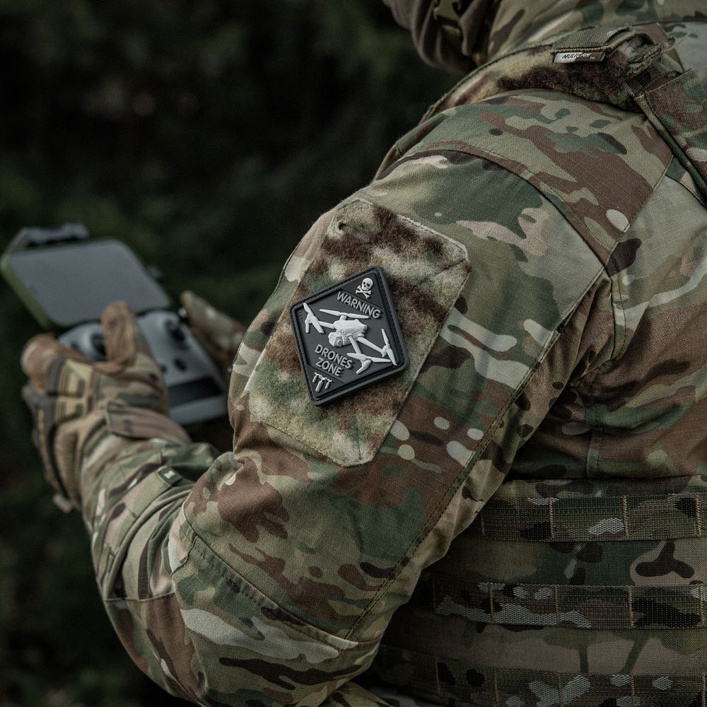 Щодня українські захисники активно використовують дрони для виявлення і знищення ворожої техніки та складів з боєприпасами. Тому бренд М-Тас випустив оригінальну нашивку DRONES ZONE, яка присвячена операторам БПЛА аеророзвідки.