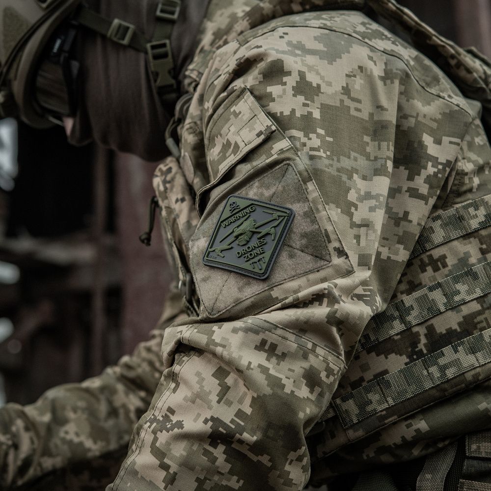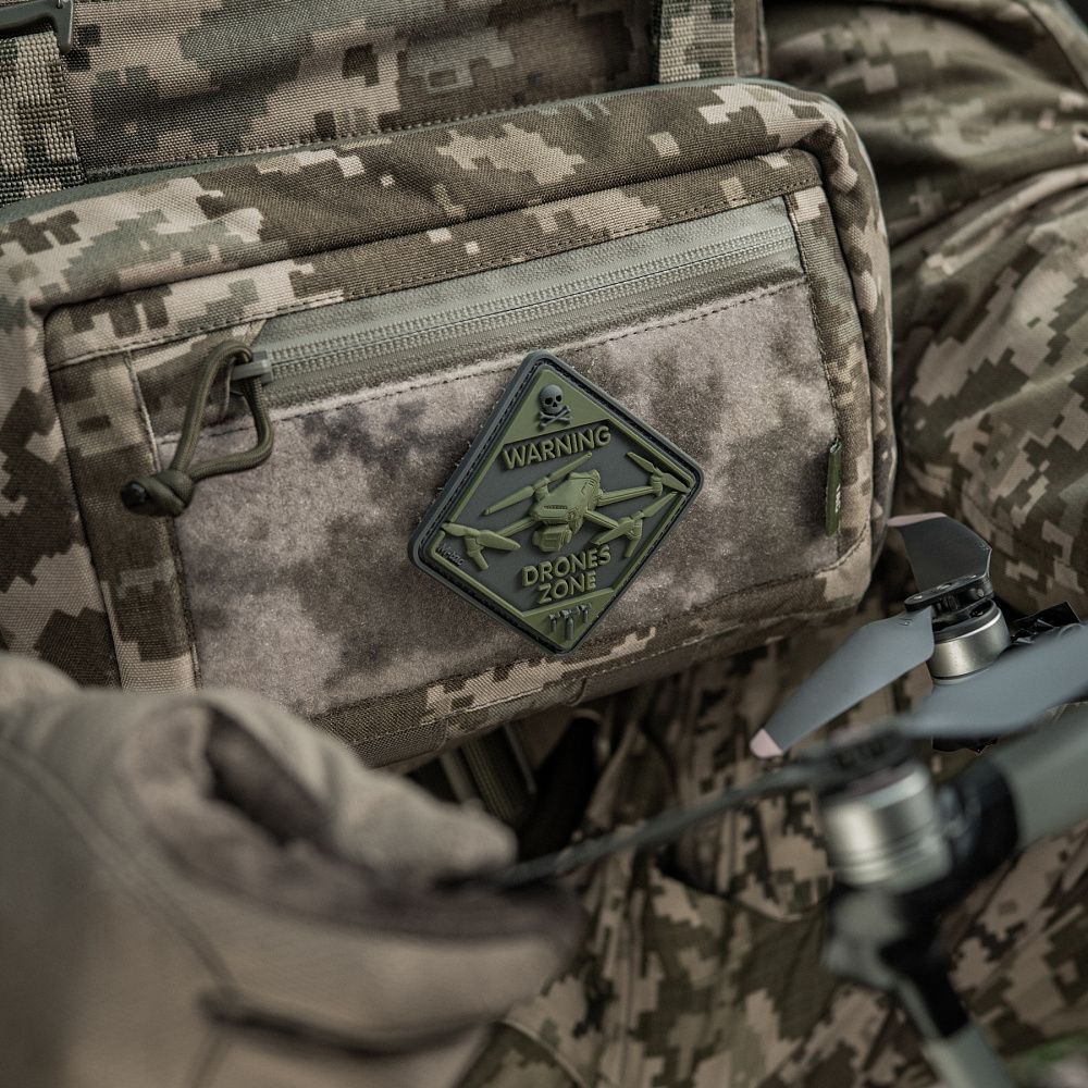 Щодня українські захисники активно використовують дрони для виявлення і знищення ворожої техніки та складів з боєприпасами. Тому бренд М-Тас випустив оригінальну нашивку DRONES ZONE, яка присвячена операторам БПЛА аеророзвідки.