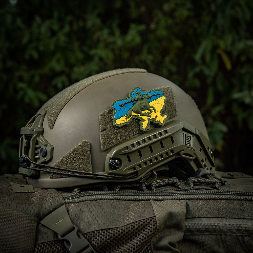 Патч виконаний у вигляді карти України на патріотичному жовто-блакитному тлі. Зображення козака зі списом на коні нагадує про добу козацтва - один із найславетніших періодів в історії України. Козаки уособлюють силу духу та незламність у боротьбі з поневолювачами.