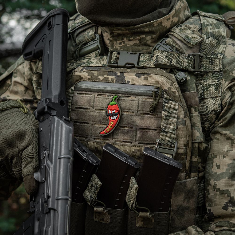 Червоний перчик, так само як й наші захисники, асоціюється з вибуховістю, активністю, гостротою та зухвалістю. Саме тому, новий патч від бренду М-Тас виконаний у формі запального стручка, з нанесеним званням, не менш запального, полковника.