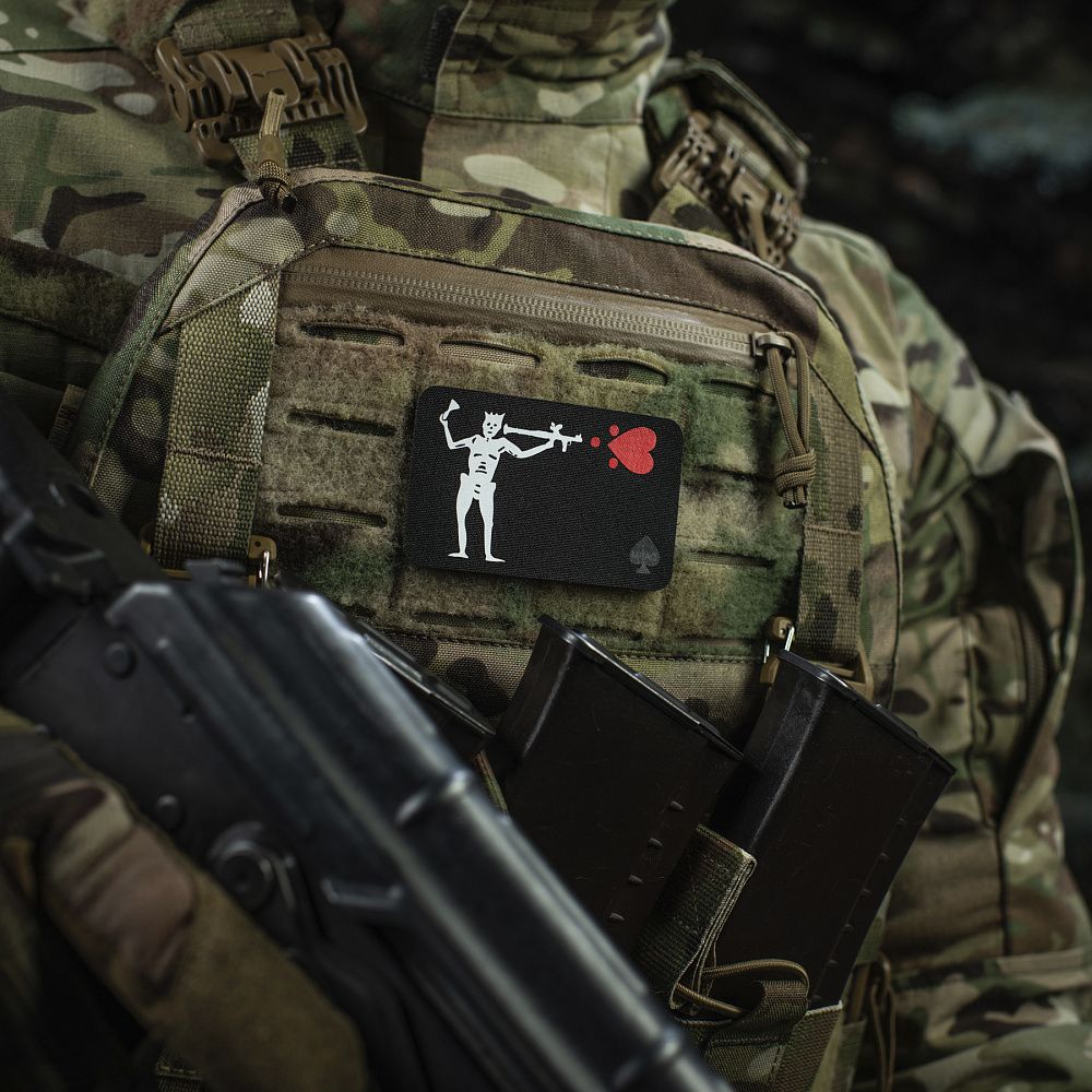 Бренд М-Тас розробив та випустив серію патчів у вигляді осучасненої інтерпретації прапора Едварда Тіча, більш відомого під прізвиськом “Чорна Борода”.