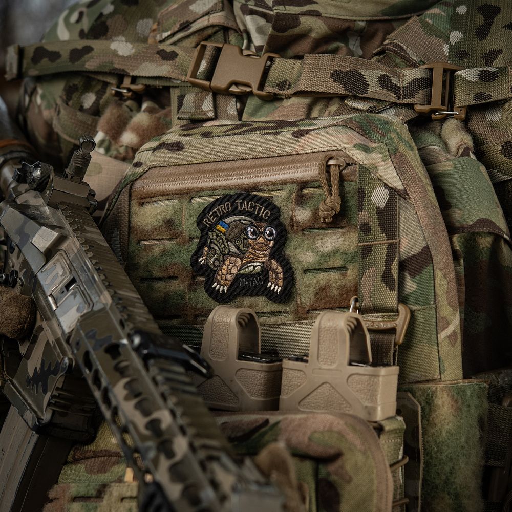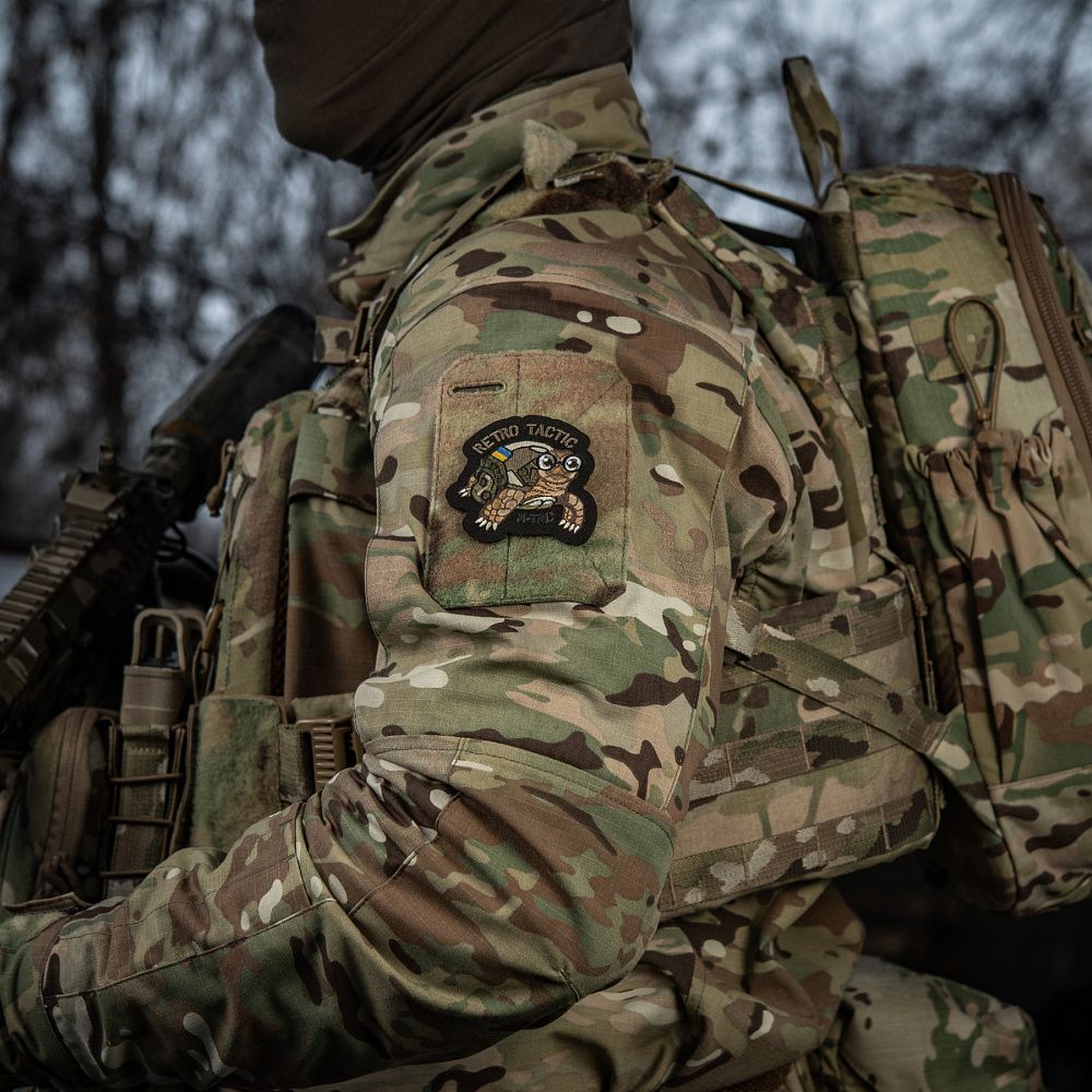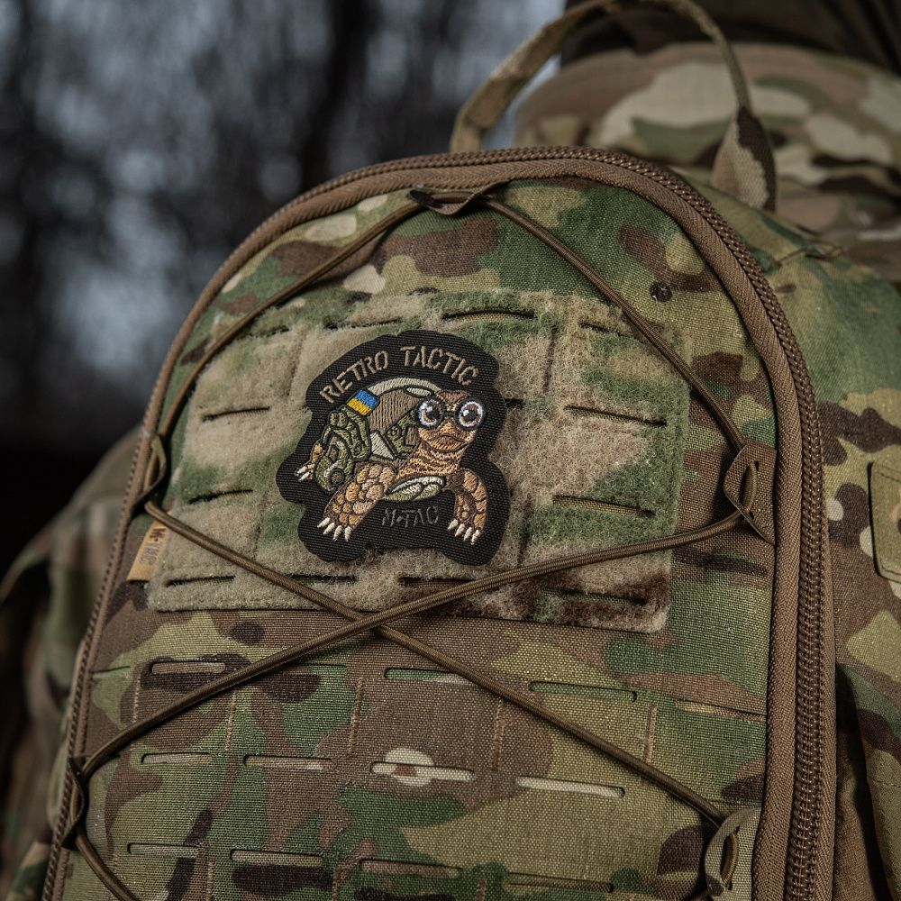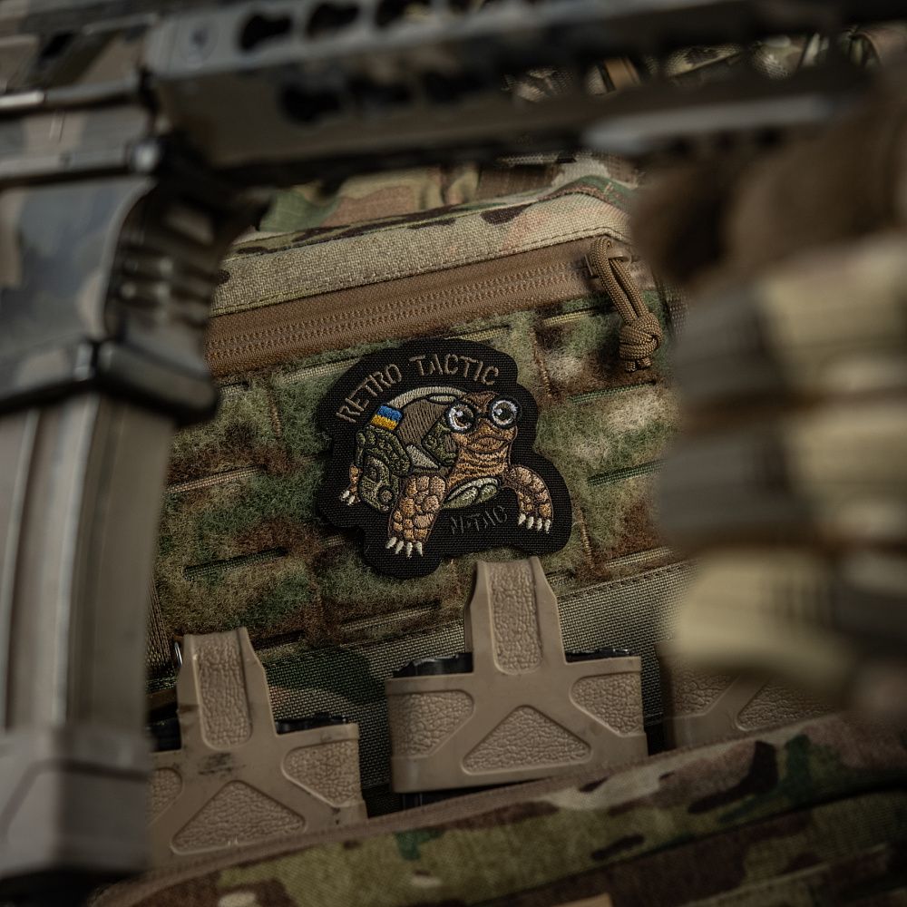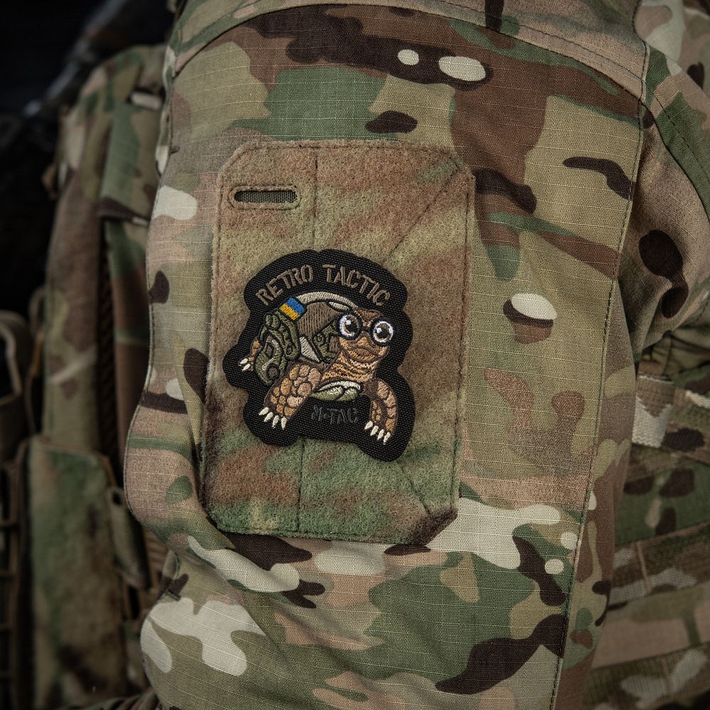 Нашивка RETRO TACTIC виготовлена з Cordura – міцного матеріалу, стійкого до стирання та високих навантажень. Малюнок нанесений кольоровою вишивкою. Нашивку можна використовувати з будь-яким одягом і спорядженням, де є велкро липучка.