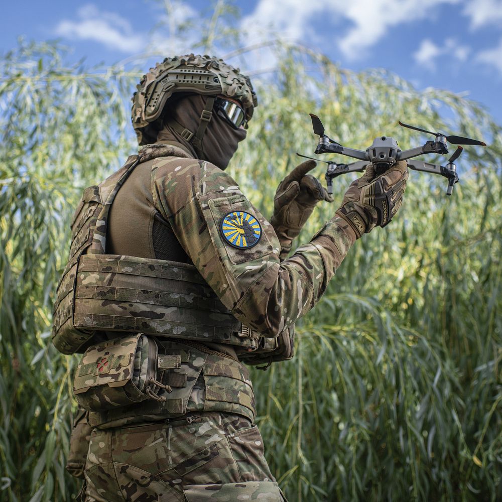 На патчі зображений самурай, який майстерно управляє дроном на фоні стилізованого жовто-блакитного "сонячного прапора", відомого в Японії як Хіномару ("круг сонця" або ж "круг вогню"). В країні висхідного сонця Хіномару є символом гордості, ідентичності та національного єднання. Він відображає значення сонця як джерела світла, тепла і життя, а також символізує мир, щастя та процвітання.