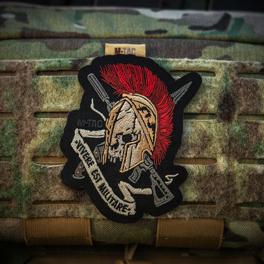 M-Tac нашивка шолом Vivere Est Militare (вишивка)