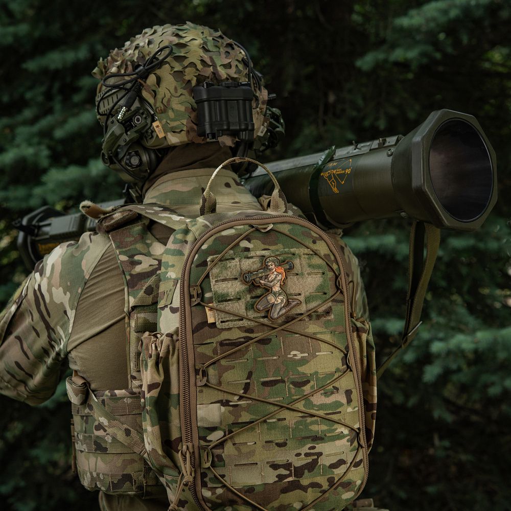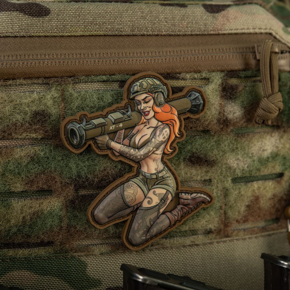 На патчі зображена харизматична й надзвичайно приваблива дівчина в стилі Pin-Up. Її грація приховує сталеву рішучість, а протитанковий гранатомет АТ-4 на плечі - виражає готовність будь-якої миті вступити в бій. Тіло дівчини покрите тематичними татуюваннями, які повністю передають бойовий дух войовничої красуні. Всі вони наділені особливою силою, виражають глибоке значення та підкреслюють міць її характеру.
