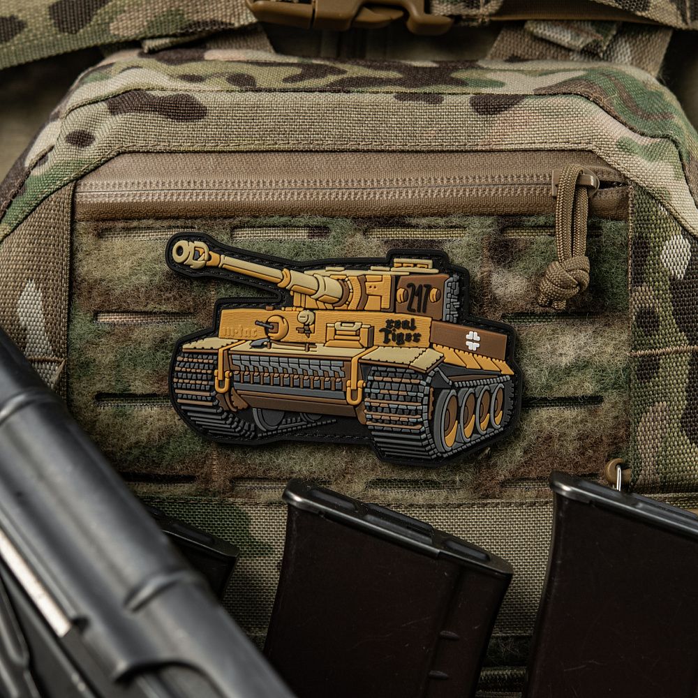 Нашивка виконана у формі легендарного німецького танку Tiger, завдяки якому, Німеччина здобула більшість перемог у танкових боях на східному фронті за часів Другої світової війни. І хоч легендарні танки Tiger більше не випускаються, з їхньою доблесною справою чудово справляються військові з однойменними прізвиськами - українські тигри!