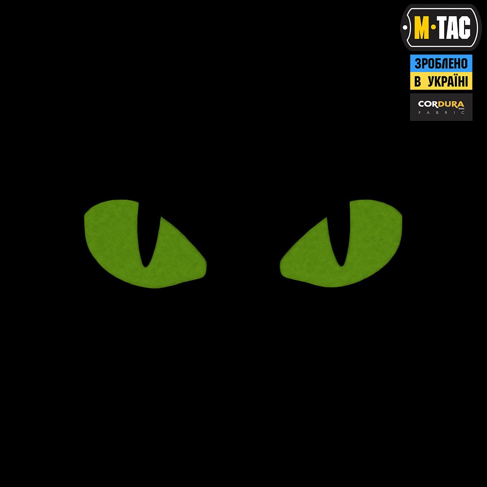 M-Tac нашивка Tiger eyes призначена для кріплення на MOLLE-стропах замість звичайної липучки. Зображення виконано зі світлонакопичувального матеріалу, що світиться в темряві.