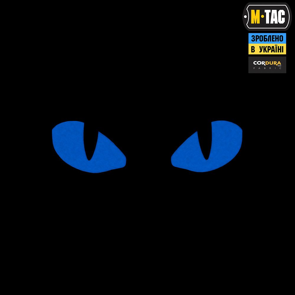 M-Tac нашивка Tiger eyes призначена для кріплення на MOLLE-стропах замість звичайної липучки. Зображення виконано зі світлонакопичувального матеріалу, що світиться в темряві.