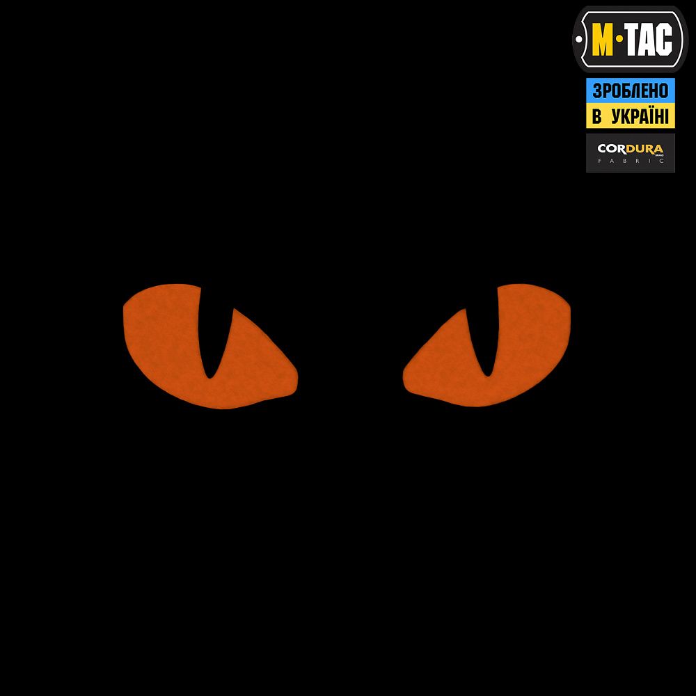 M-Tac нашивка Tiger eyes призначена для кріплення на MOLLE-стропах замість звичайної липучки. Зображення виконано зі світлонакопичувального матеріалу, що світиться в темряві.