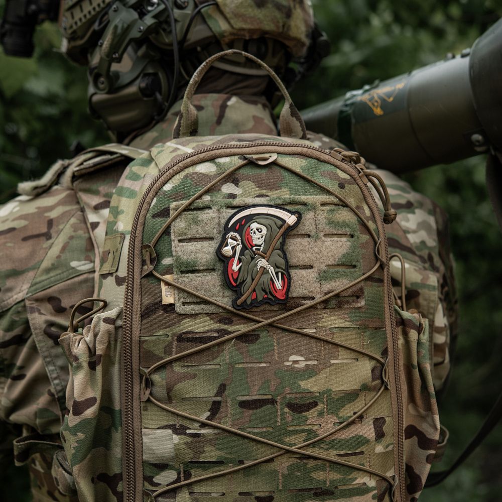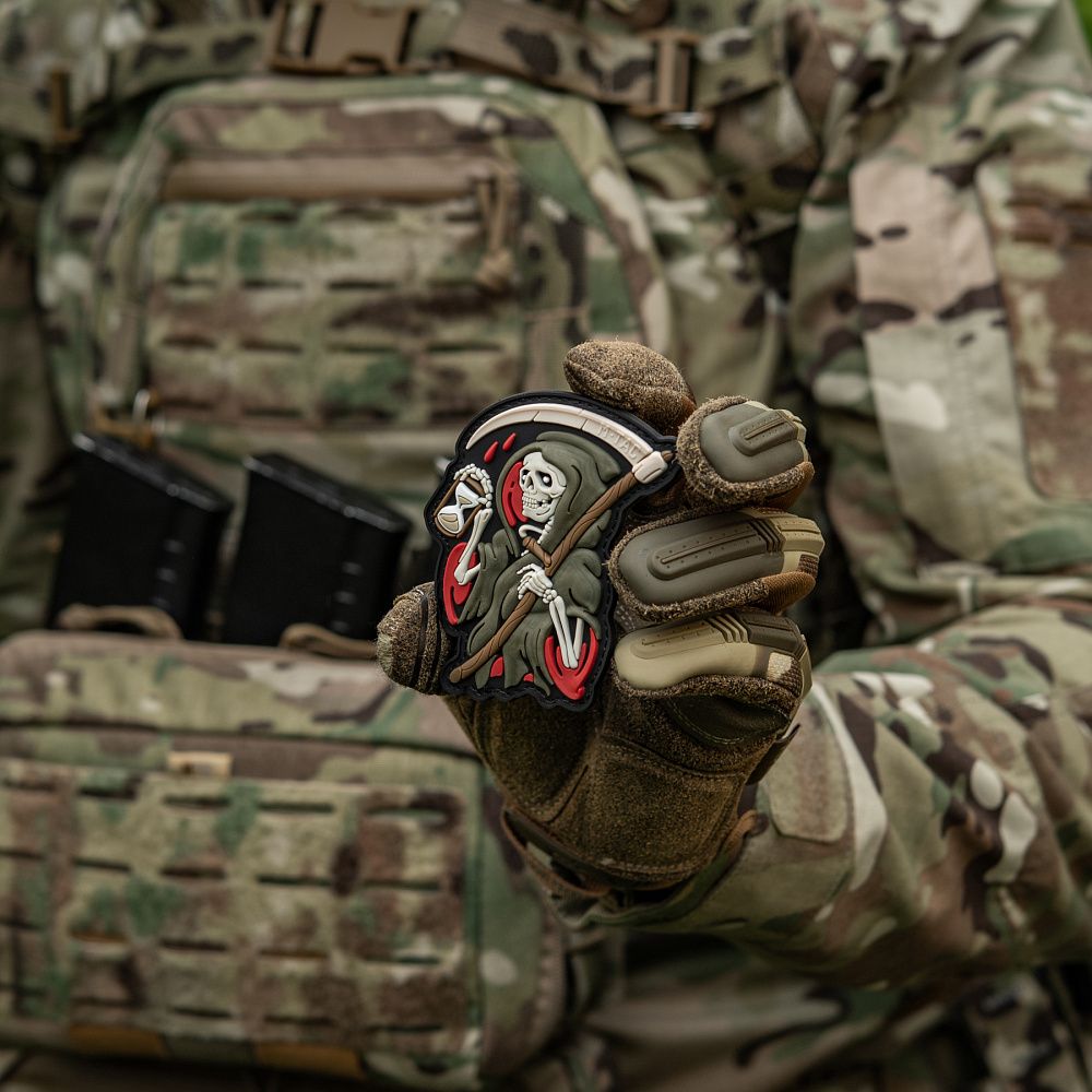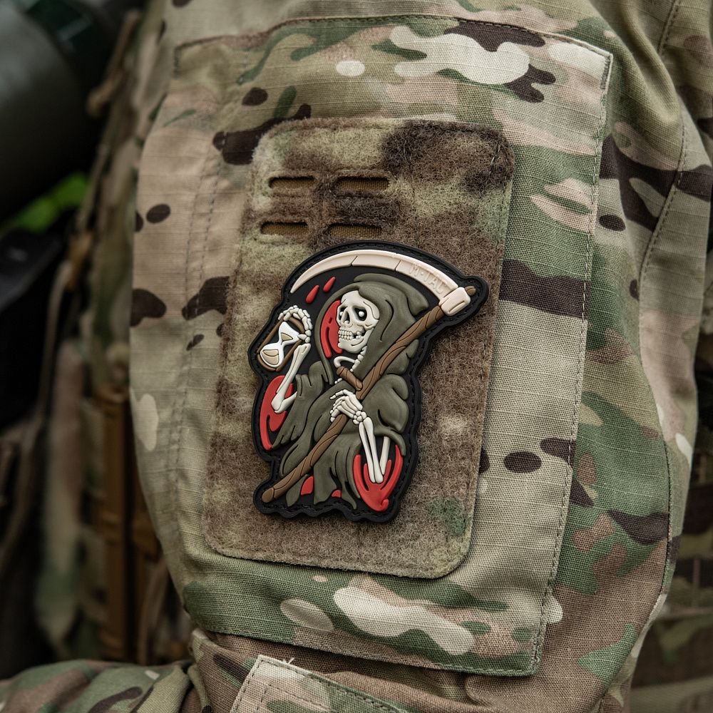 На нашивці зображено фрагмент оригінального принта – смерть, з пісочним годинником у руці. ЇЇ образ є нагадуванням про брак часу на прийняття рішень. Адже у боротьбі усе залежить лише від навичок, майстерності та вдачі, а кожен наступний хід може визначити: ти чи вона.