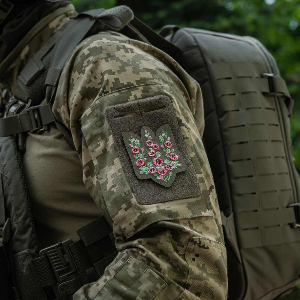 M-Tac нашивка Тризуб рожеві Мальви (вишивка) Ranger Green