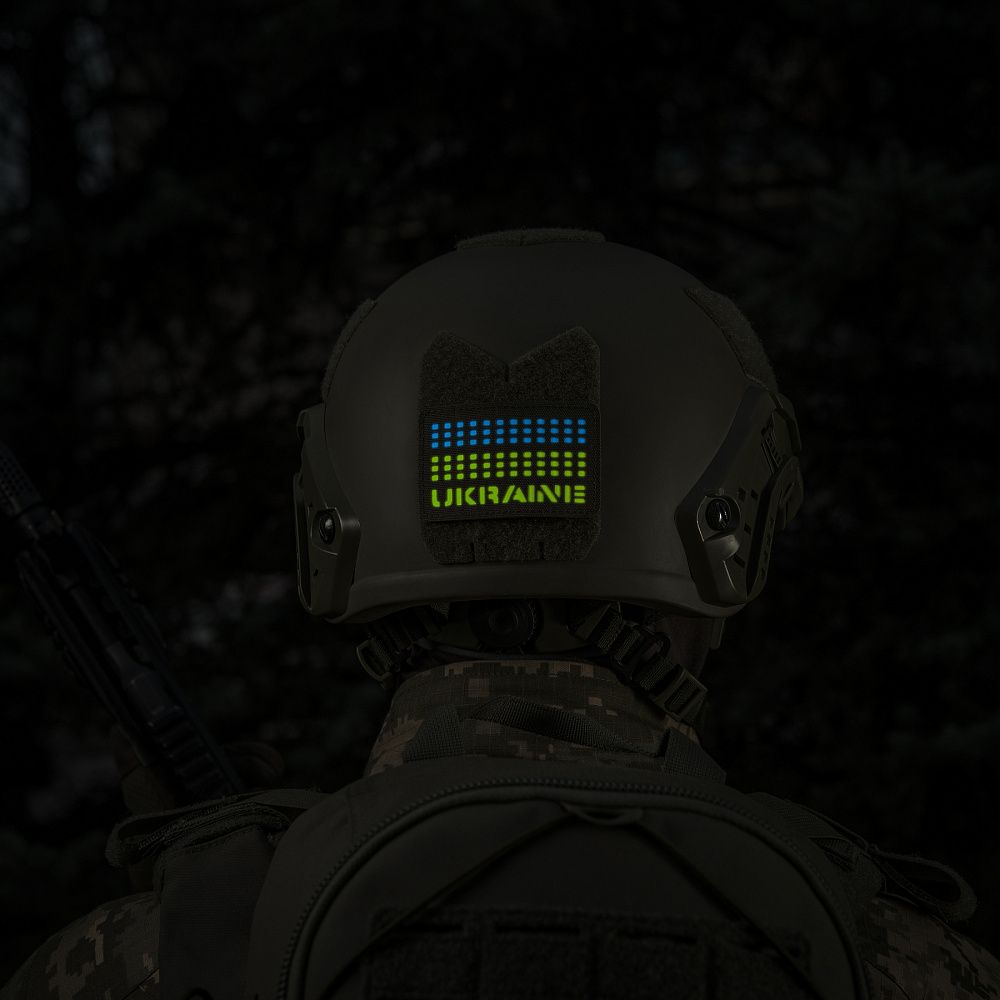 Малюнок виконаний шляхом вклеювання світлонакопичувального прогумованого матеріалу необхідних кольорів між основним матеріалом та велкро-липучкою. Таким чином, прапор і напис не нанесені на нашивку, а утворені завдяки кольоровим вставкам, що проглядають із прорізів Cordura. Це робить нашивку міцною, а зображення - стійким до стирання. Нашивку можна використовувати з будь-яким одягом та спорядженням де є велкро липучка.