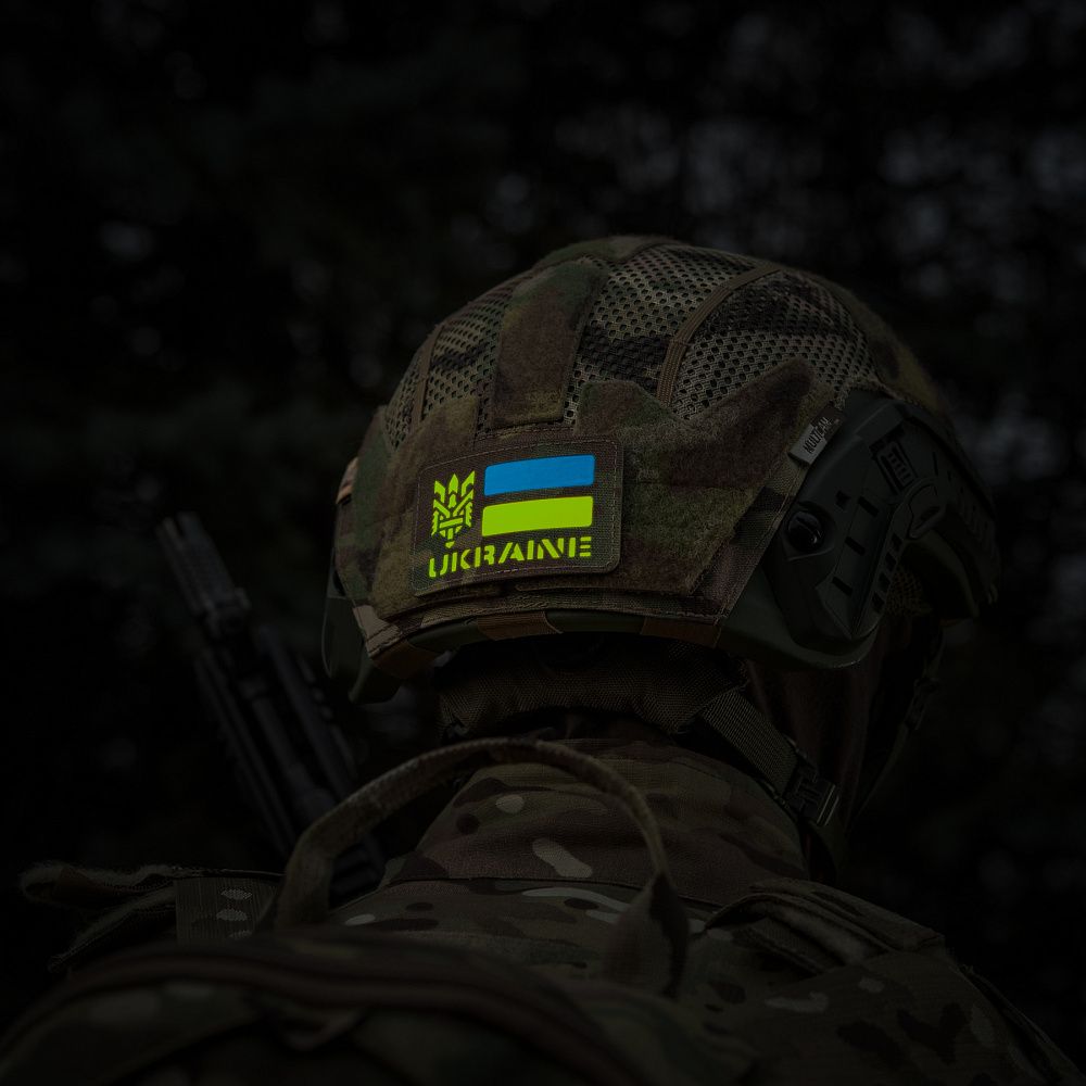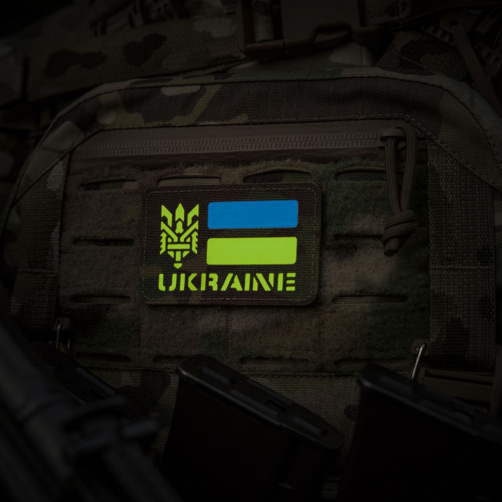 Малюнок виконаний шляхом вклеювання світлонакопичувального прогумованого матеріалу необхідних кольорів між основним матеріалом та велкро-липучкою. Таким чином, прапор і напис не нанесені на нашивку, а утворені завдяки кольоровим вставкам, що проглядають із прорізів Cordura. Це робить нашивку міцною, а зображення - стійким до стирання. Нашивку можна використовувати з будь-яким одягом та спорядженням де є велкро липучка.