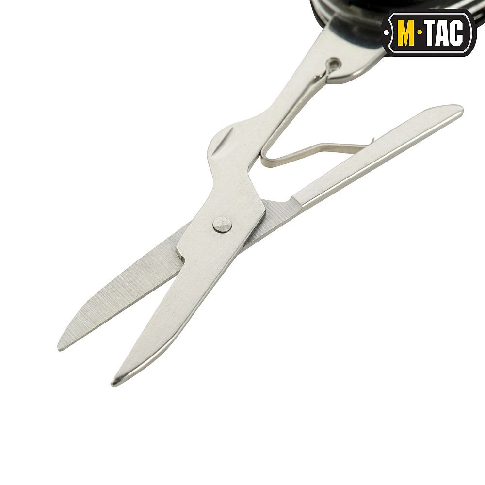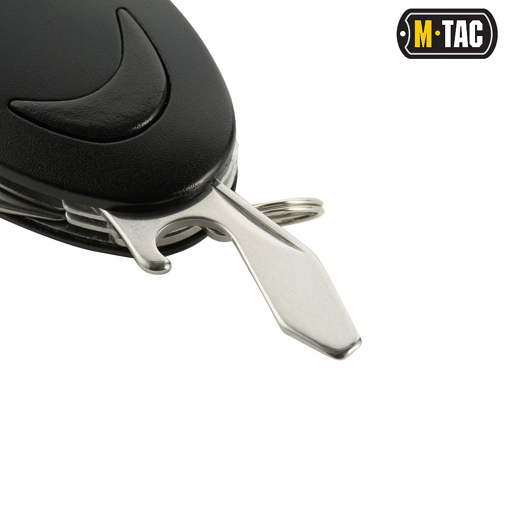 M-Tac ніж складаний малий (7 інструм.) Steel/Black за своєю функціональністю може посперечатися з подібними виробами від відомого швейцарського бренду. Адже в комплект, разом з практичним складаним клинком, входять 7 інструментів. При цьому, розміри і вага набору всього в 95 грамів дозволяють носити його з собою постійно.