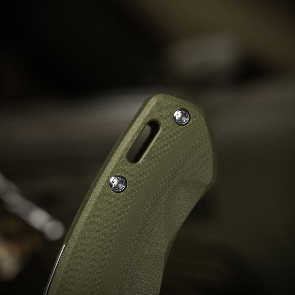 Руків'я ножа виконане з матеріалу G10 – висвисокоміцного композиту на основі склотканини, просоченого епоксидною смолою і спресованого під високим тиском і температурою. Даний матеріал характеризується високою міцністю, легкістю та зносостійкістю.