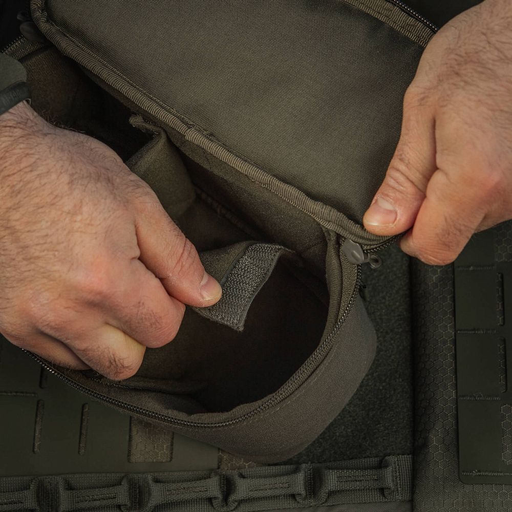 На передній частині органайзера розташована велкро-панель, призначена для кріплення ідентифікаторів та патчів. Органайзер розстібається за принципом валізи, завдяки двом застібкам-блискавкам. Для зручності перенесення на верхній частині органайзера розташована пом’якшена ручка.