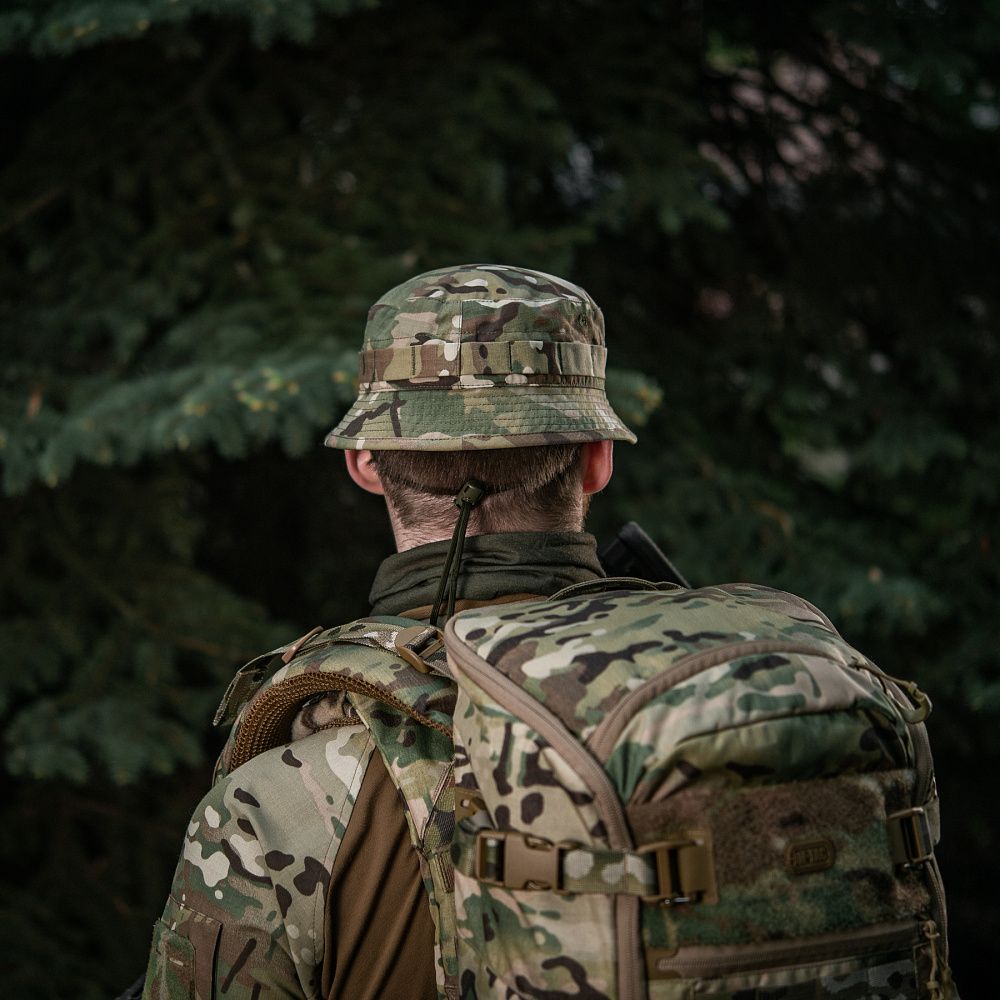 Особливості:особливий крій з короткими напівжорсткими полями; Molle інтерфейс для кріплення додаткових засобів маскування; спеціальний шнур, що не дозволить панамі злетіти з голови.