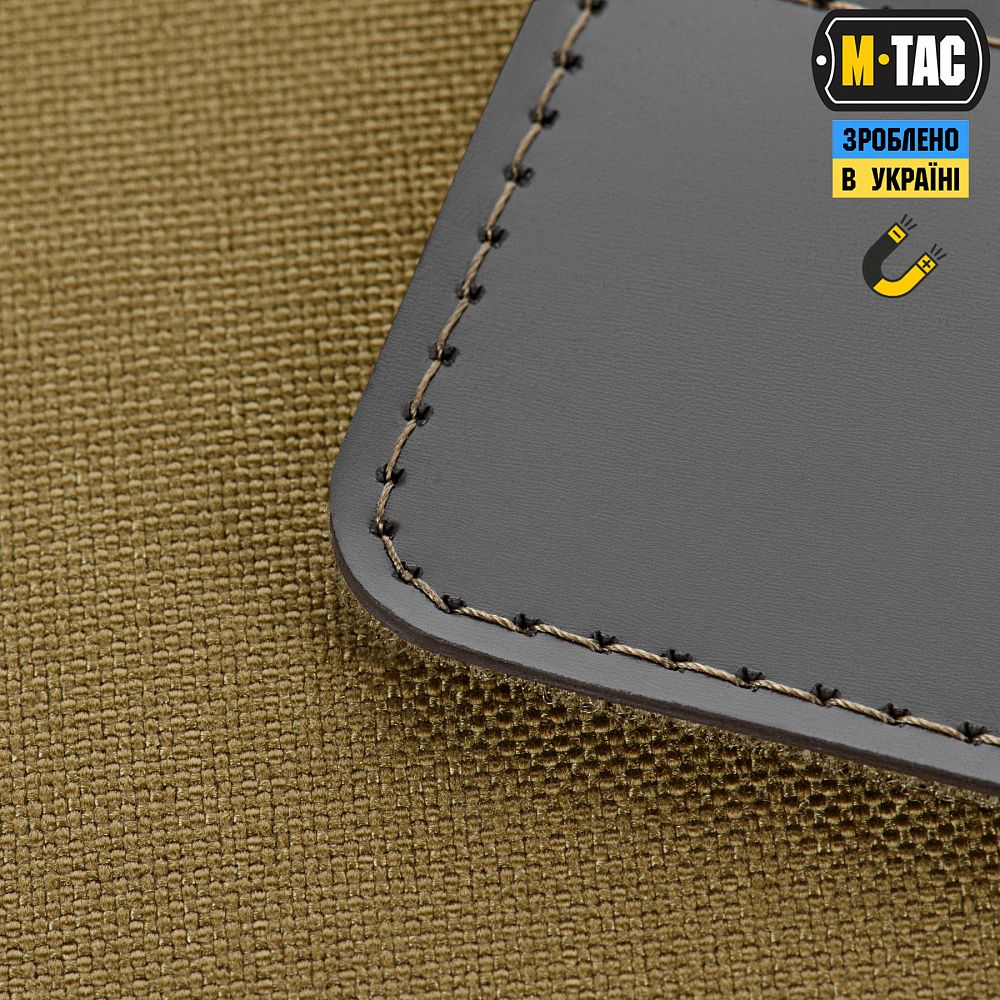 Передня частина панелі виготовлена з велкро-полотна, на яке нашивки легко чіпляються та надійно тримаються. Задня частина виготовлена з магнітного полотна, завдяки якому панель можна розмістити на будь-якій металевій поверхні.