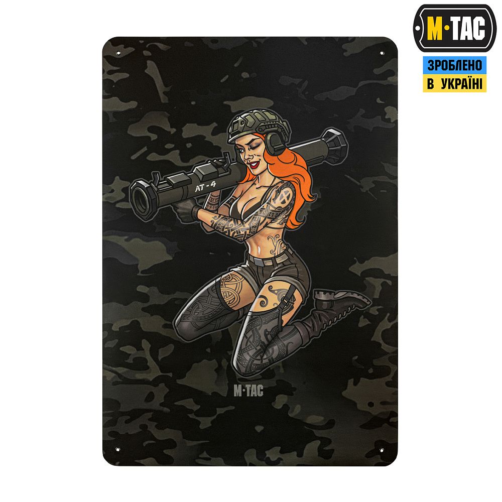 На панелі зображена харизматична й надзвичайно приваблива дівчина в стилі Pin-Up. Її грація приховує сталеву рішучість, а протитанковий гранатомет АТ-4 на плечі - виражає готовність будь-якої миті вступити в бій. Тіло дівчини покрите тематичними татуюваннями, які передають бойовий дух войовничої красуні.