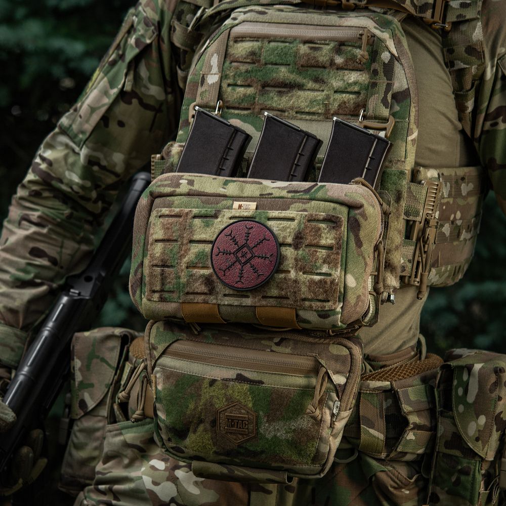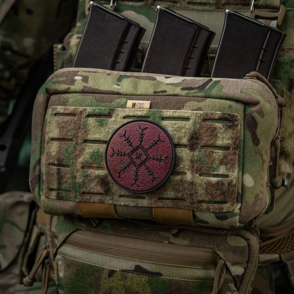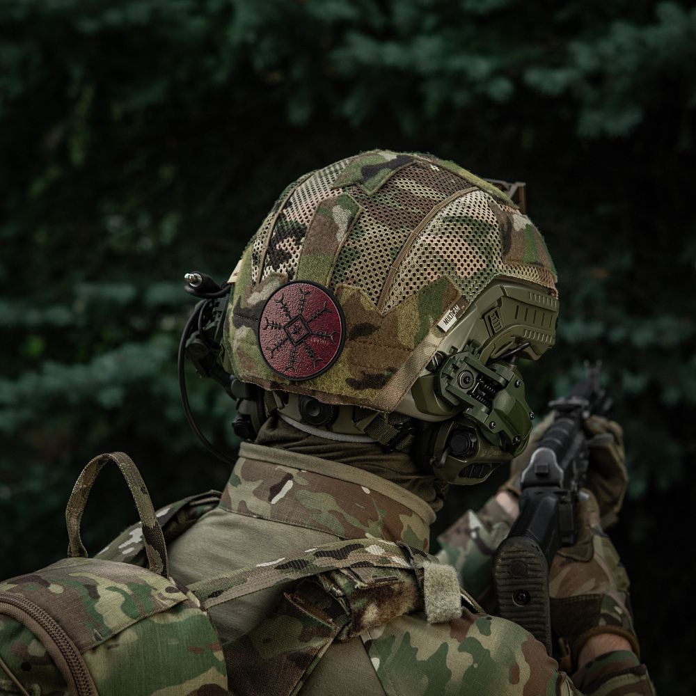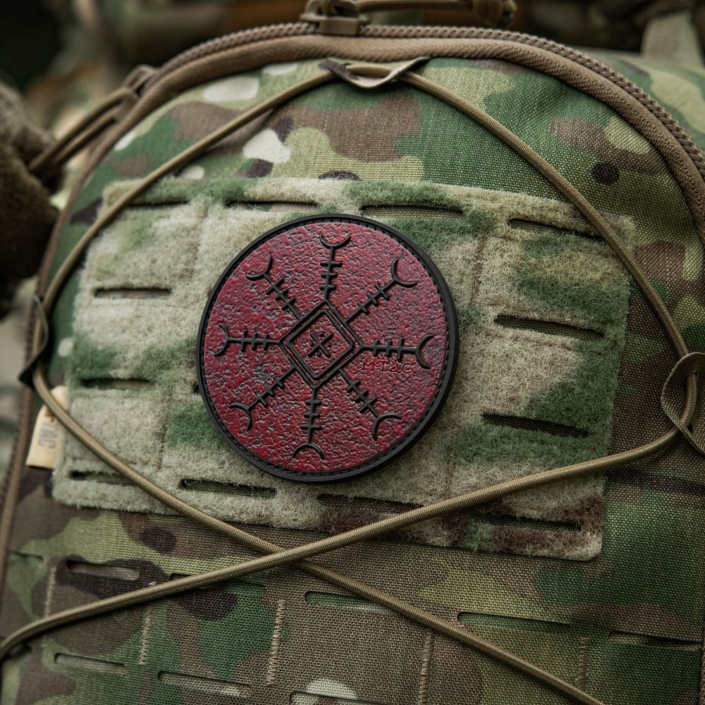 Патч КОНОТОПСЬКИЙ ОБЕРІГ - це колаборація фільму-помсти «Конотопська Відьма» студії FILM.UA і бренду М-Тас. Цей спеціально розроблений для фільму символ поєднує силу Конотопської Відьми, руну “Шолом жаху” та елементи вишивки Сумського регіону, найбільш притаманні Конотопу. “Шолом жаху” вважається одним з найсильніших символів захисту воїна, охороняючи його з усіх восьми сторін. Символ також покликаний навіювати страх на ворогів, змушувати їх до втечі.