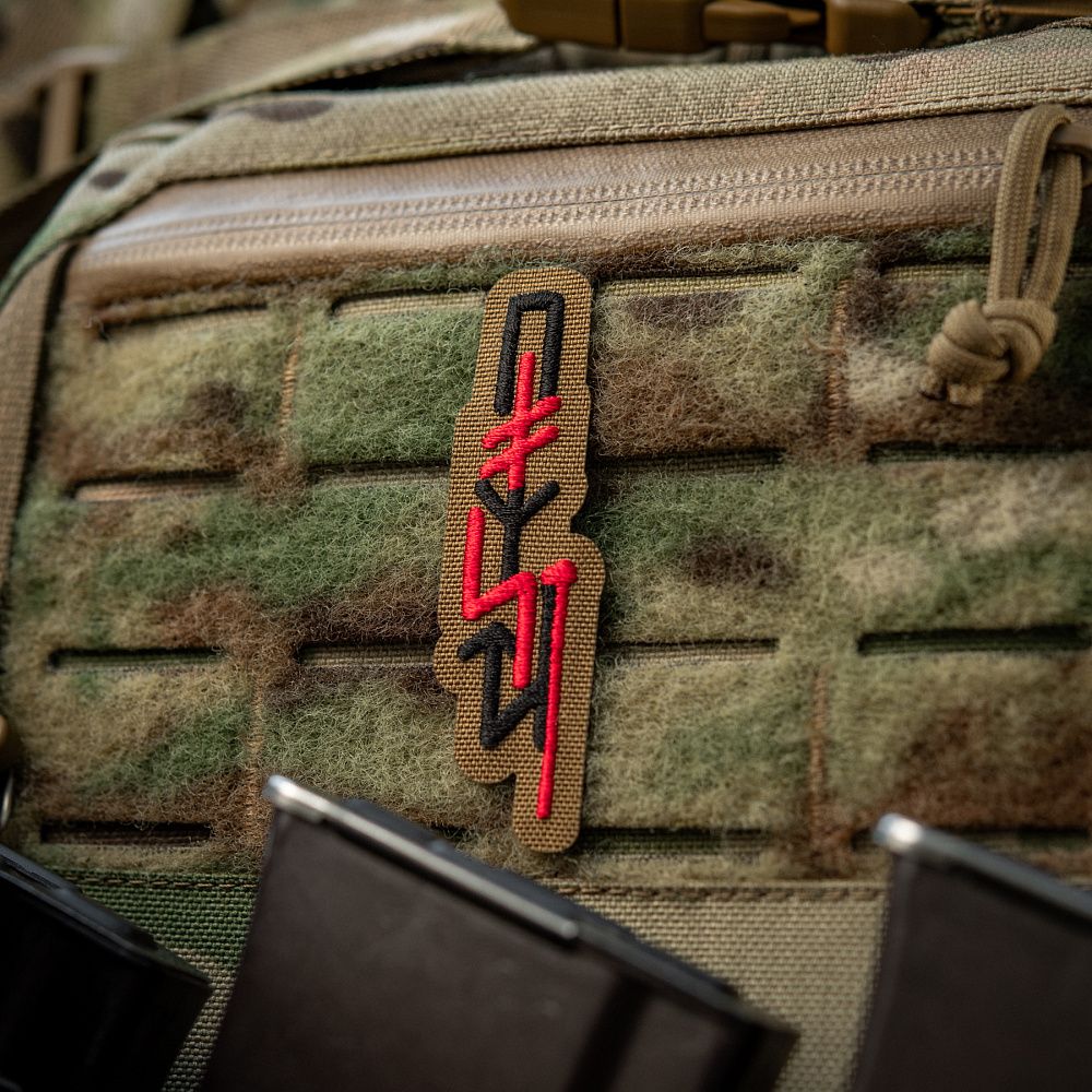 Патч ПОМСТА - це колаборація фільму-помсти «Конотопська Відьма» студії FILM.UA і бренду М-Тас. На ньому зображені інтерпретовані рунічні символи, які утворюють слово "помста". Як відомо, руни - це давній алфавіт, який використовувався для письма або ж магічних цілей. Тож, патч ПОМСТА - слугуватиме поєднанням наших культурних витоків та концепції горору “Конотопська відьма”.