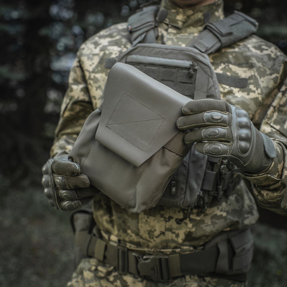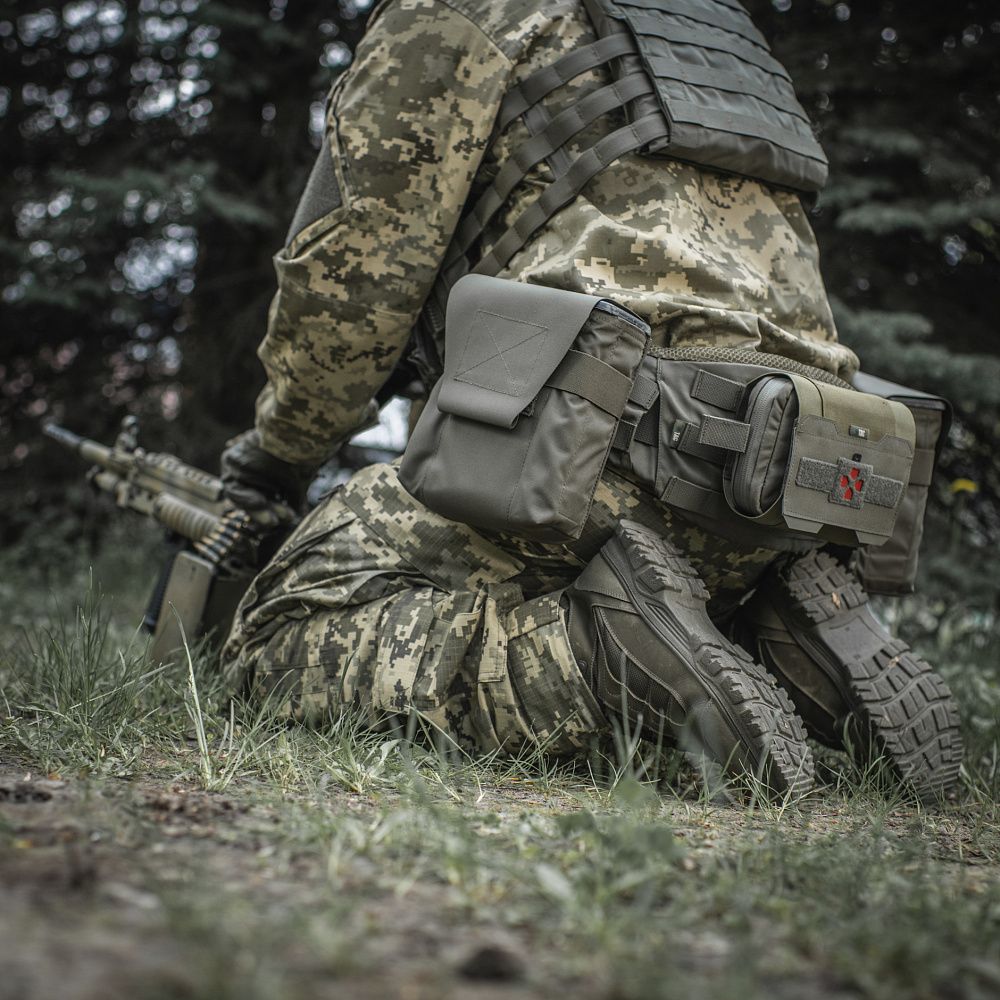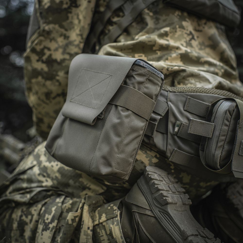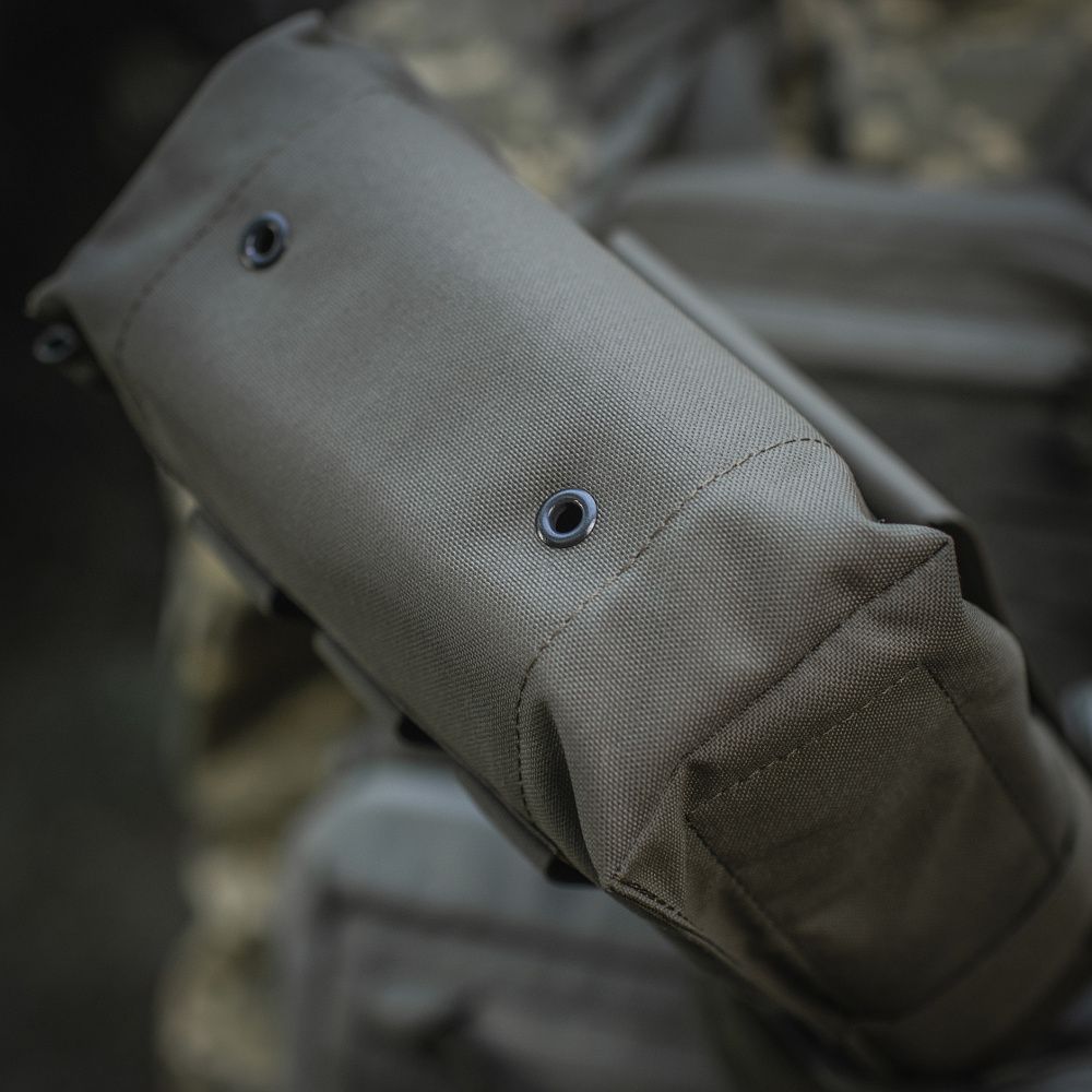 Короб надійно фіксується еластичною резинкою та кришкою-клапаном на велкро липучці. Всередині підсумка дизайнери бренду передбачили спеціальні нейлонові стропи по боках, щоб короб легко вилучався. Кріпиться до спорядження за допомогою MOLLE інтерфейсу, виконаного по технології Laser Cut.