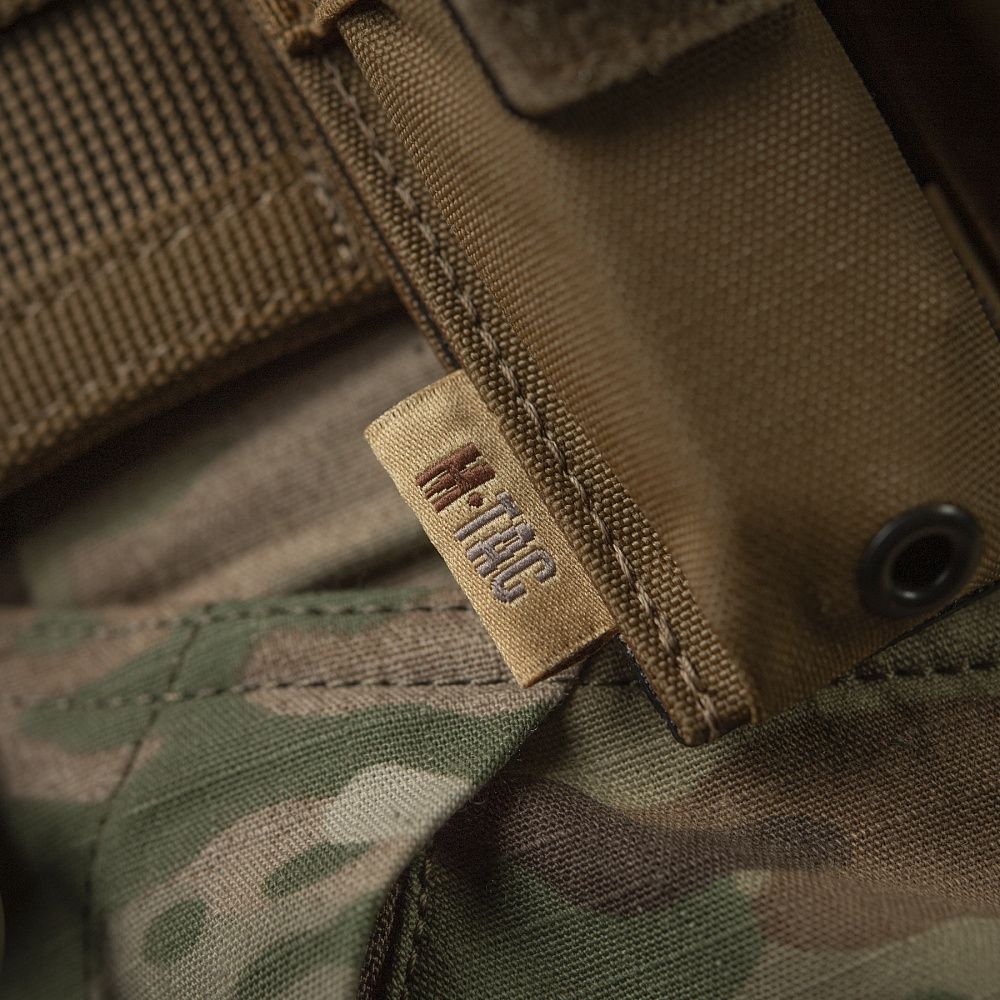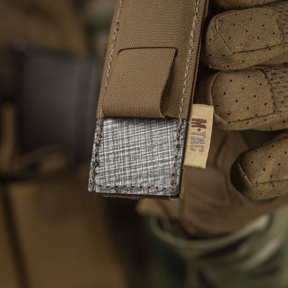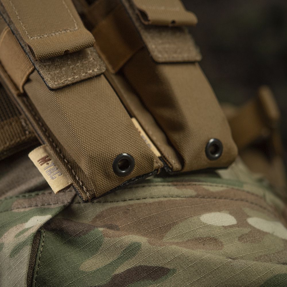 Виготовлений з Сordura 500D – високоякісного матеріалу, стійкого до стирання та великих навантажень. Фронтальна частина підсумку оснащена еластичною резинкою (100% нейлон), завдяки якій регулюється об'єм підсумка та фіксується магазин чи мультитул. Підсумок закривається спеціальним клапаном (100% нейлон) з велкро панелями, завдяки якому ви можете регулювати його по висоті та надійно фіксувати вміст. Внизу підсумку виробник передбачив наявність спеціального люверсу, який буде забезпечувати виведення бруду, пилу та піску, які потрапили всередину.