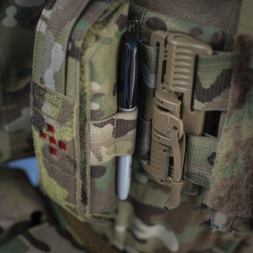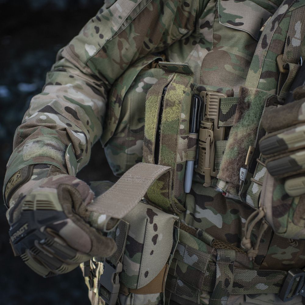 Матеріал виготовлення підсумка - Cordura Squadron високоякісний матеріал, стійкий до стирання та великих навантажень. На бічних частинах підсумка розташовані додаткові резинки для кріплення маркерів. Задня частина оснащена системою Molle Laser Cut (виготовлена з Cordura Squadron), що дозволяє прикріпити підсумок до будь-якого спорядження на якому присутній відповідний інтерфейс.