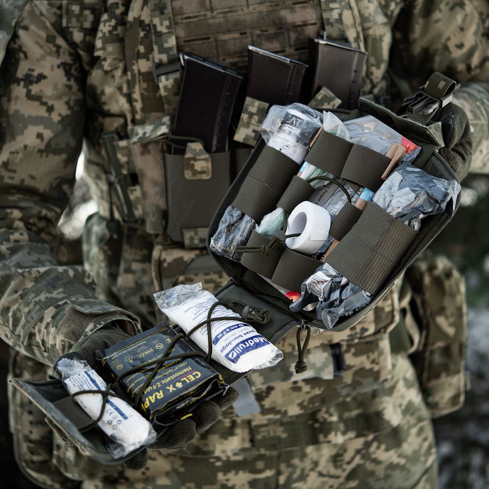 В середині підсумка (а також на внутрішній частині клапана) розташований органайзер виконаний з еластичної резинки. За допомогою нього ви зможете розмістити у підсумку усе необхідне медичне приладдя.