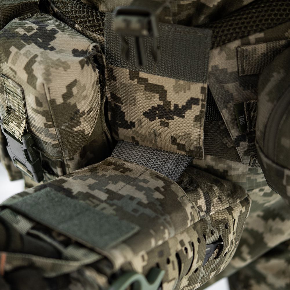 З боків підсумку розташовані накладки з прорізами, на які можна розмістити як додаткове спорядження, так і елементи медичного приладдя (наприклад тактичні медичні ножиці). На передній частині підсумка розташована велкро панель з прорізами, на яку можна закріпити ідентифікатори та патчі, а також додаткове спорядження відповідного розміру.