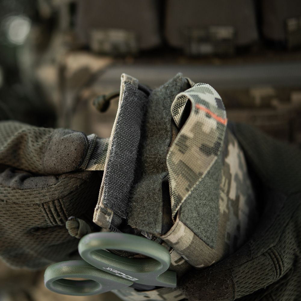 M-Tac підсумок медичний Elite Rip Off повністю відкривається одним різким рухом за стропу, яка розташована на верхній частині підсумка. Така конструктивна особливість дає змогу швидко отримати доступ до вмісту підсумка.