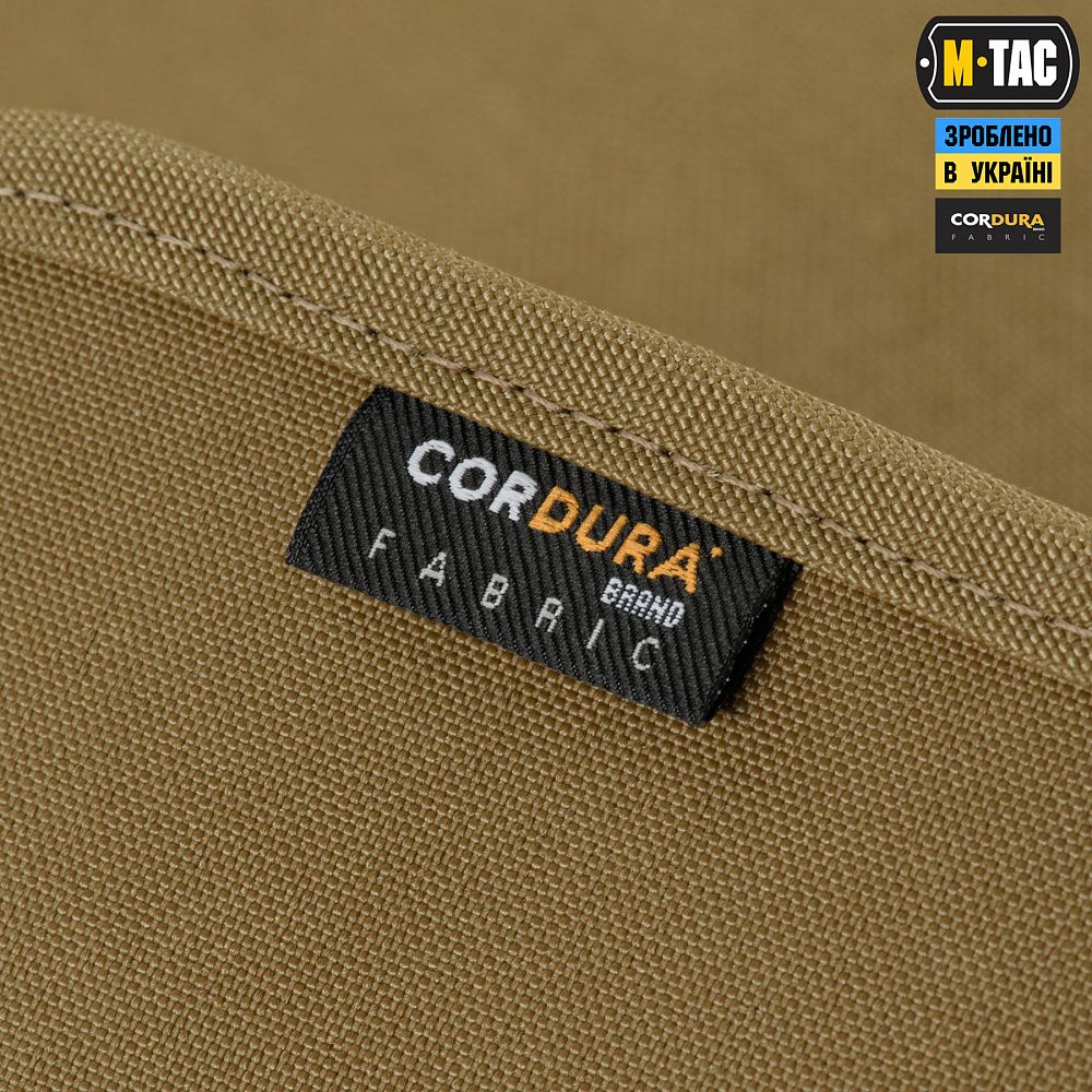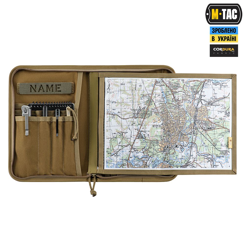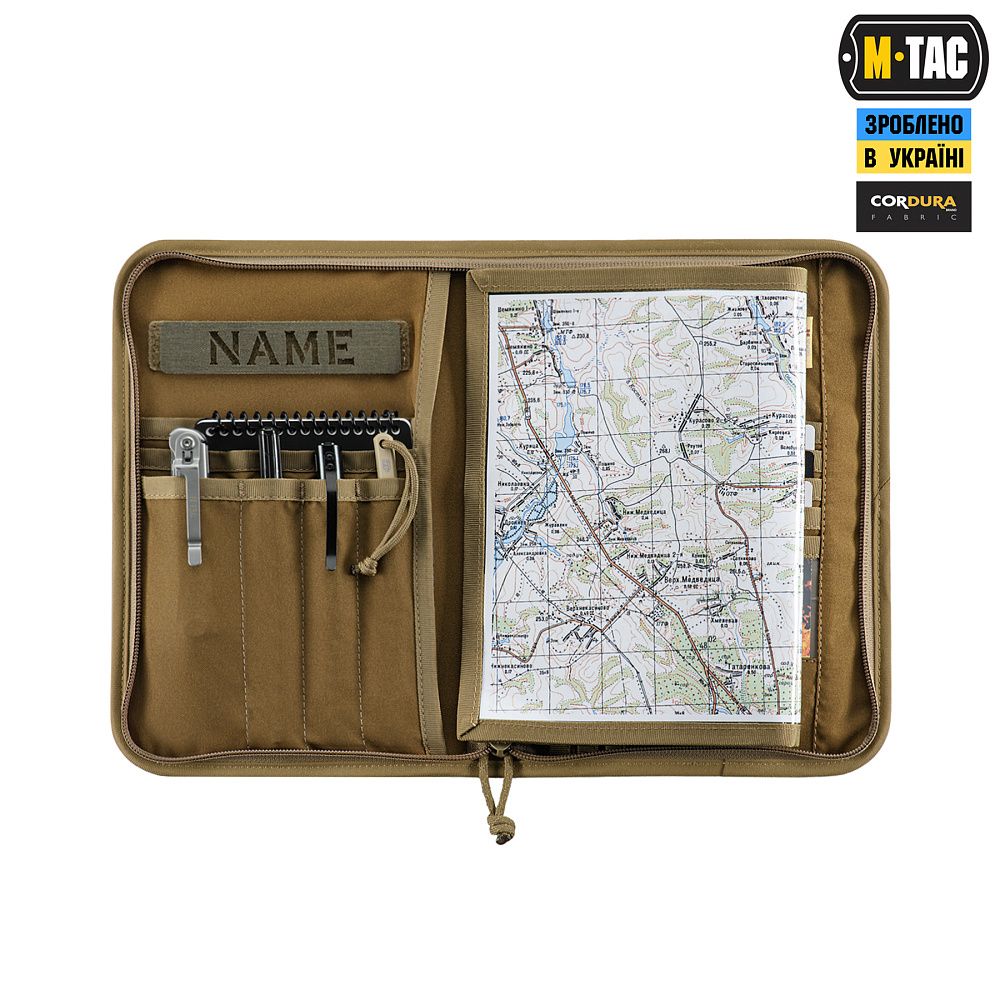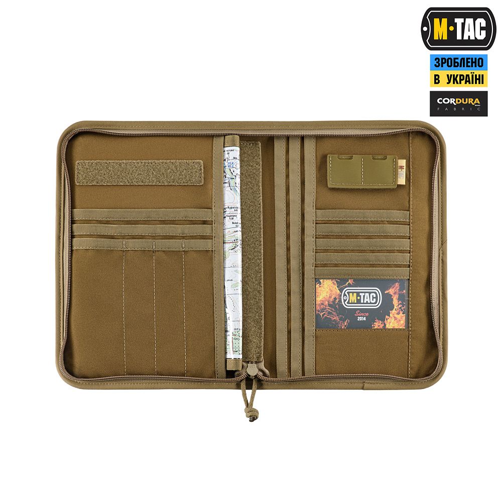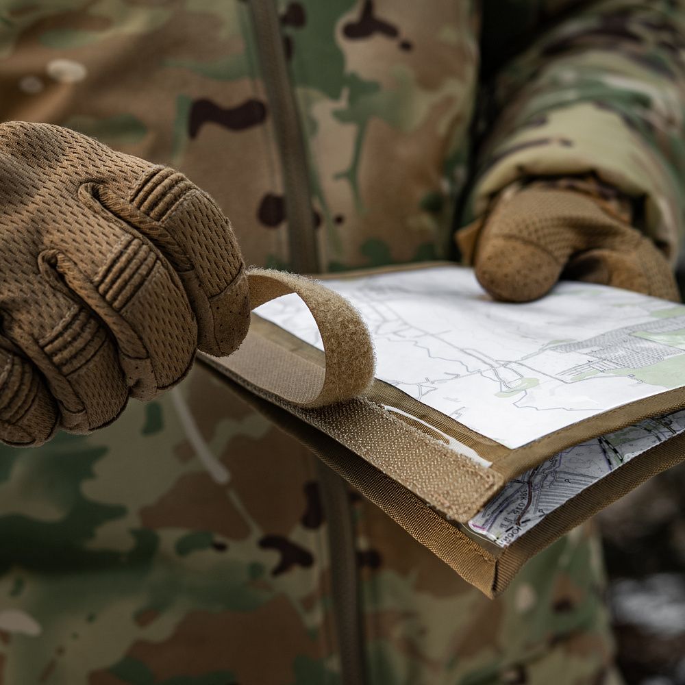 M-Tac планшет-органайзер А5 Elite виготовлений з Cordura 500D - якісного матеріалу, стійкого до стирання та високих навантажень. Внутрішня частина підсумка виконана з матеріалу Oxford, а відділення для карт пам’яті з інноваційного матеріалу Hypalon.