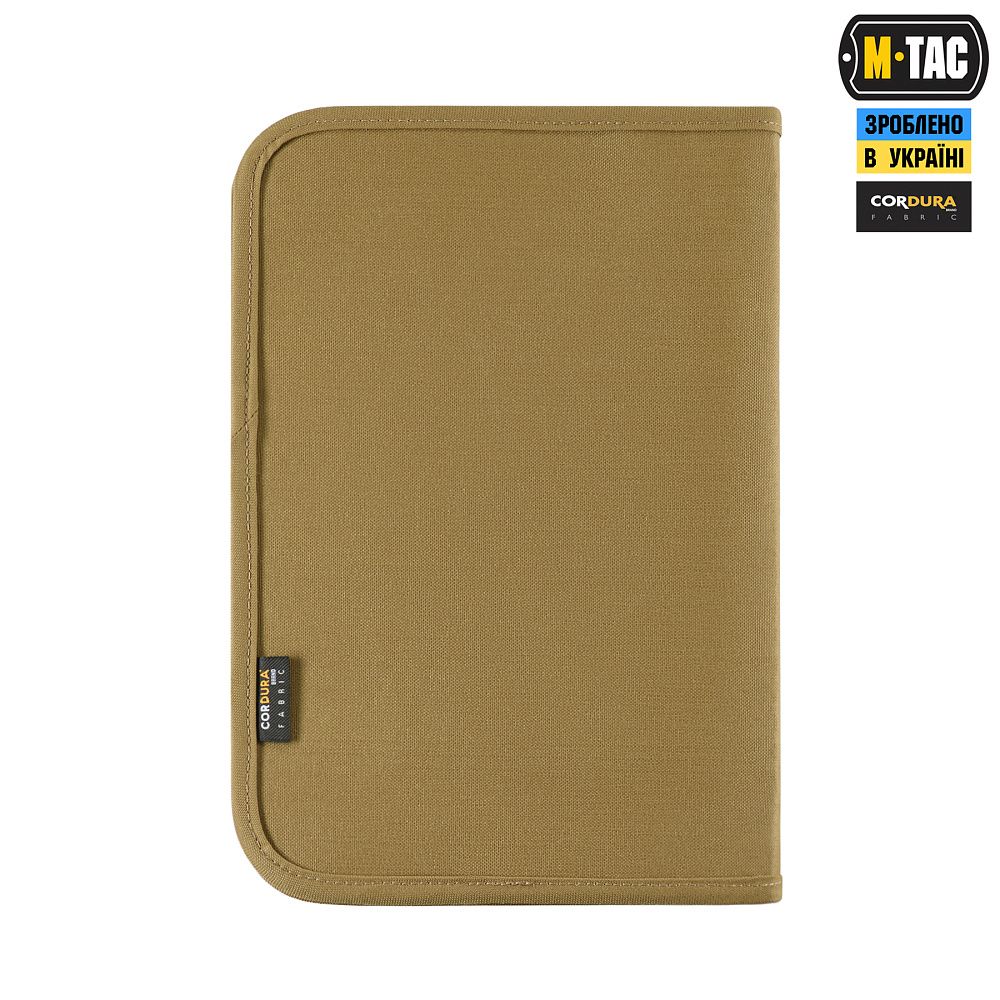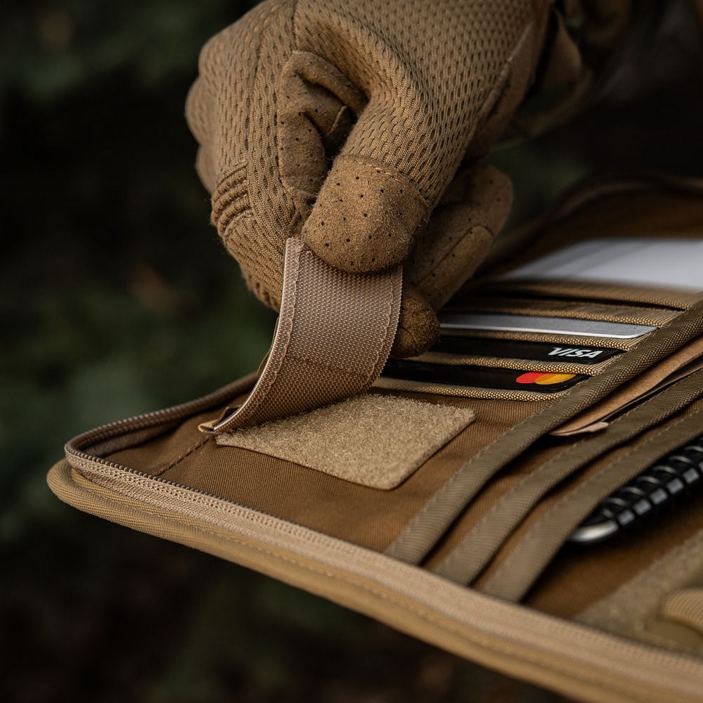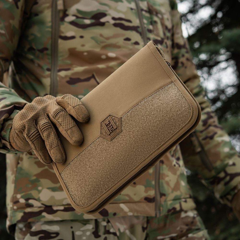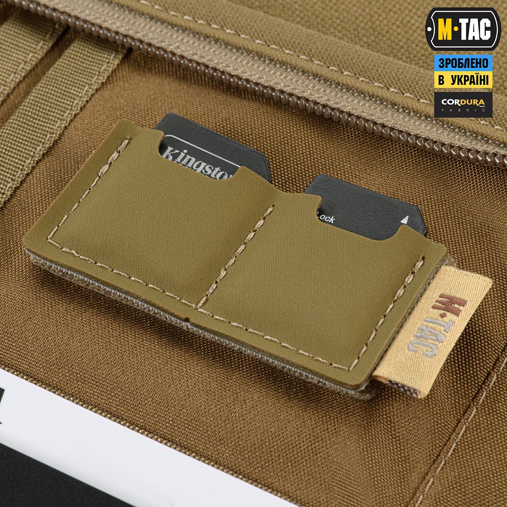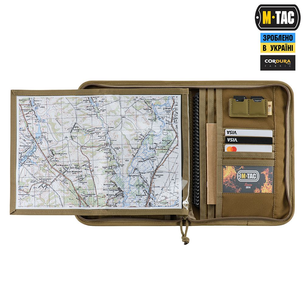 M-Tac планшет-органайзер А5 Elite виготовлений з Cordura 500D - якісного матеріалу, стійкого до стирання та високих навантажень. Внутрішня частина підсумка виконана з матеріалу Oxford, а відділення для карт пам’яті з інноваційного матеріалу Hypalon.