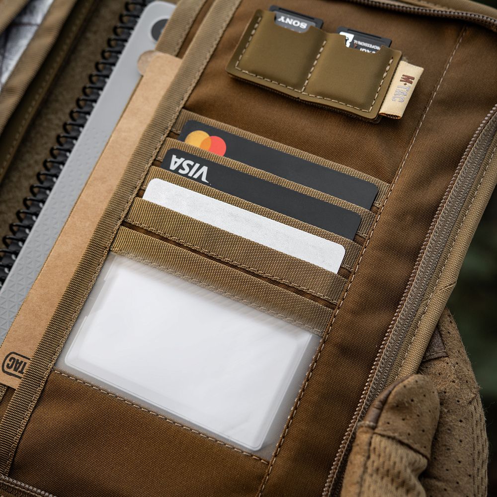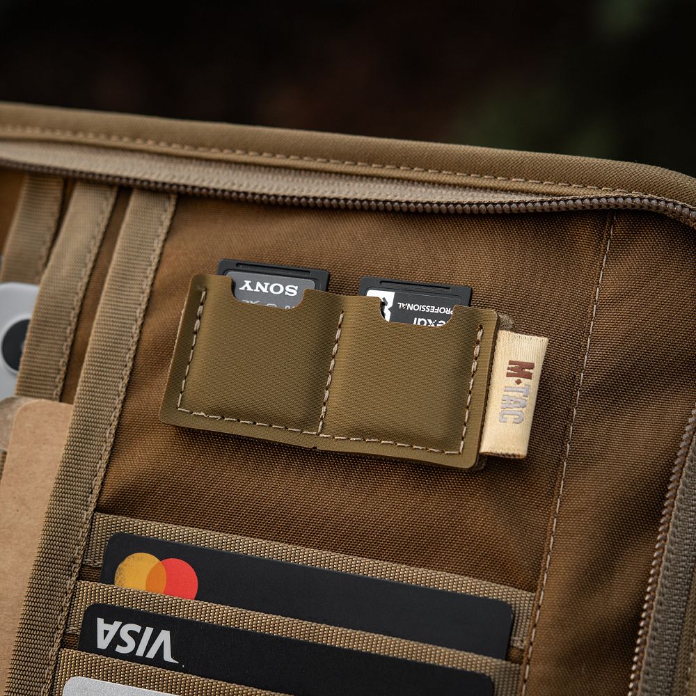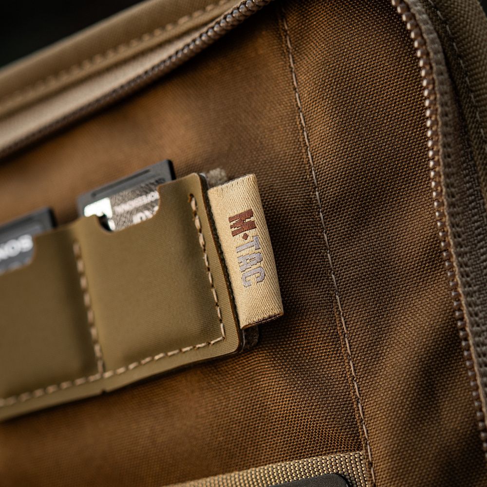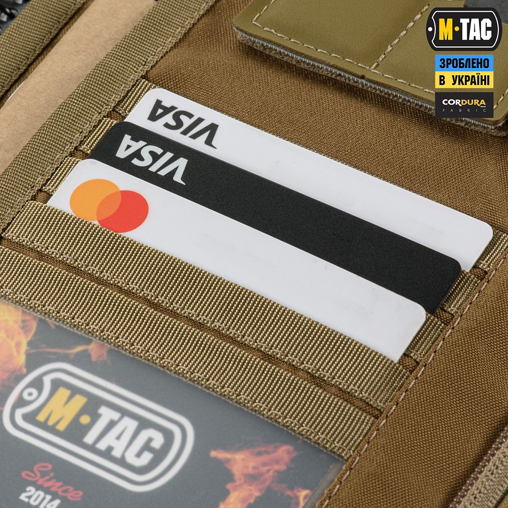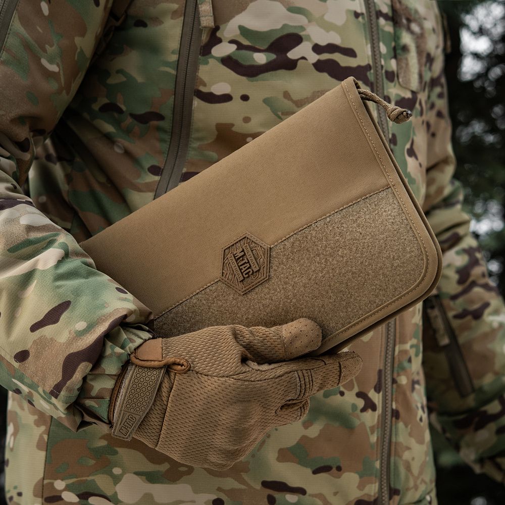 M-Tac планшет-органайзер А5 Elite виготовлений з Cordura 500D - якісного матеріалу, стійкого до стирання та високих навантажень. Внутрішня частина підсумка виконана з матеріалу Oxford, а відділення для карт пам’яті з інноваційного матеріалу Hypalon.