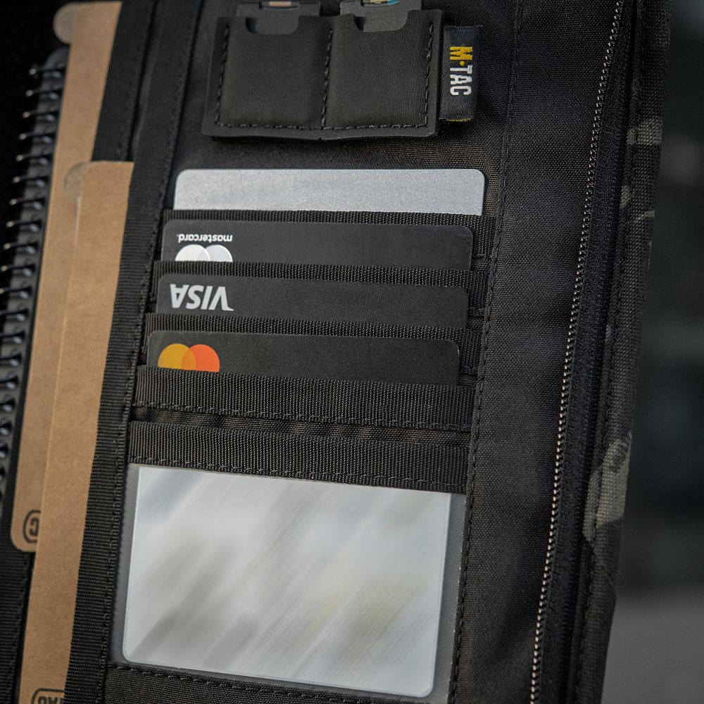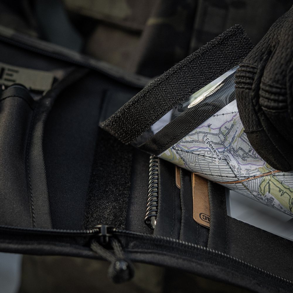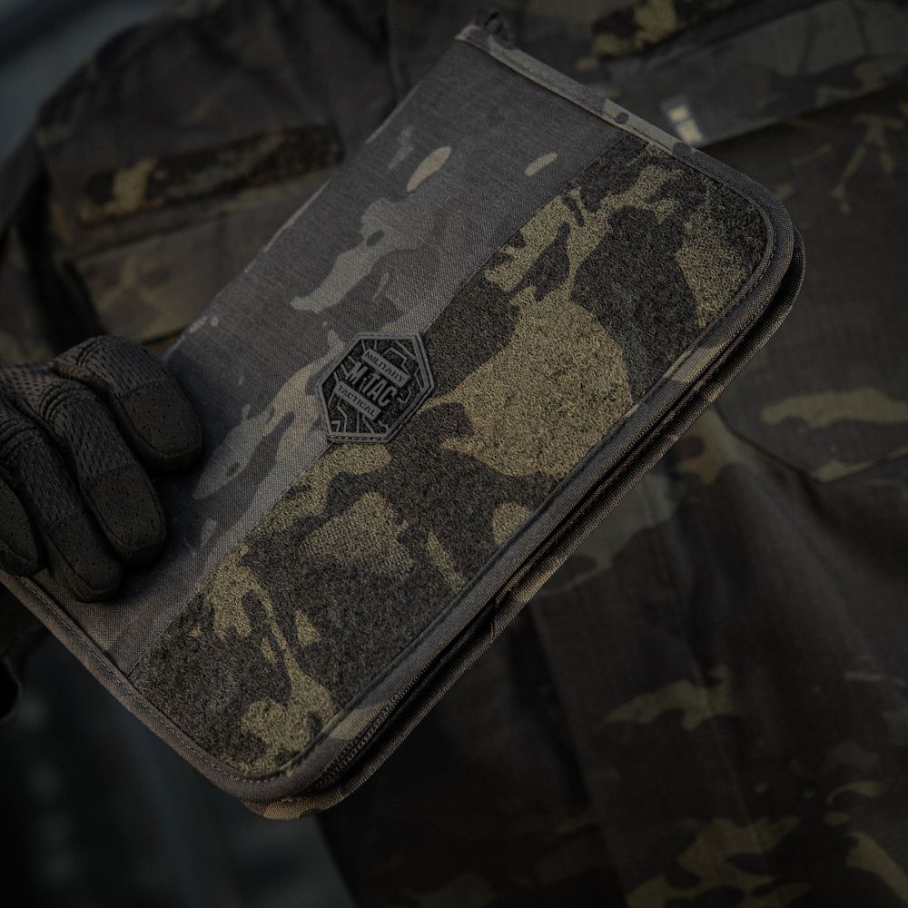 Застібається на блискавку від лідера з виробництва фурнітури, японської компанії YKK. На фронтальній частині планшета - розташована велкро панель в оригінальному патерні Black Multicam, призначена для кріплення ідентифікаторів та патчів.