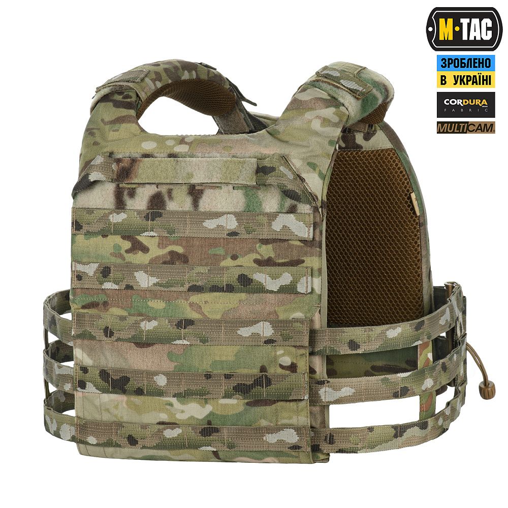 Плитоноска виготовлена з високоякісного матеріалу Cordura 500D – надміцної тканини, стійкої до стирання і високих навантажень. З внутрішньої сторони плитоноски є вставки з 3D сітки, які забезпечують амортизацію і циркуляцію повітря. Скелетоподібний камербанд значно зменшує вагу виробу і при необхідності дозволяє розмістити підсумки.