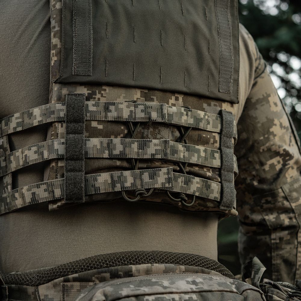 M-TAC ПЛИТОНОСКА CUIRASS ELITE XL – це новий еволюційний етап індивідуального бронезахисту в лінійці PLATE CARRIER. Розроблена дизайнерами бренду під стандартні бронеплити ESAPI (USA) Extra Large (35.5 х 28 см). Також за допомогою внутрішніх строп плитоноску можна підлаштувати під розмір плити Large (33.7 х 26 см).