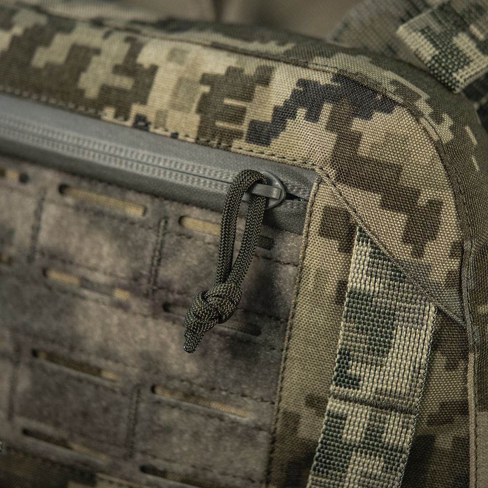 Ззаду є класичний молле-інтерфейс і ручка для евакуації, яка в похідному положенні фіксується до спинки панелями Velcro.