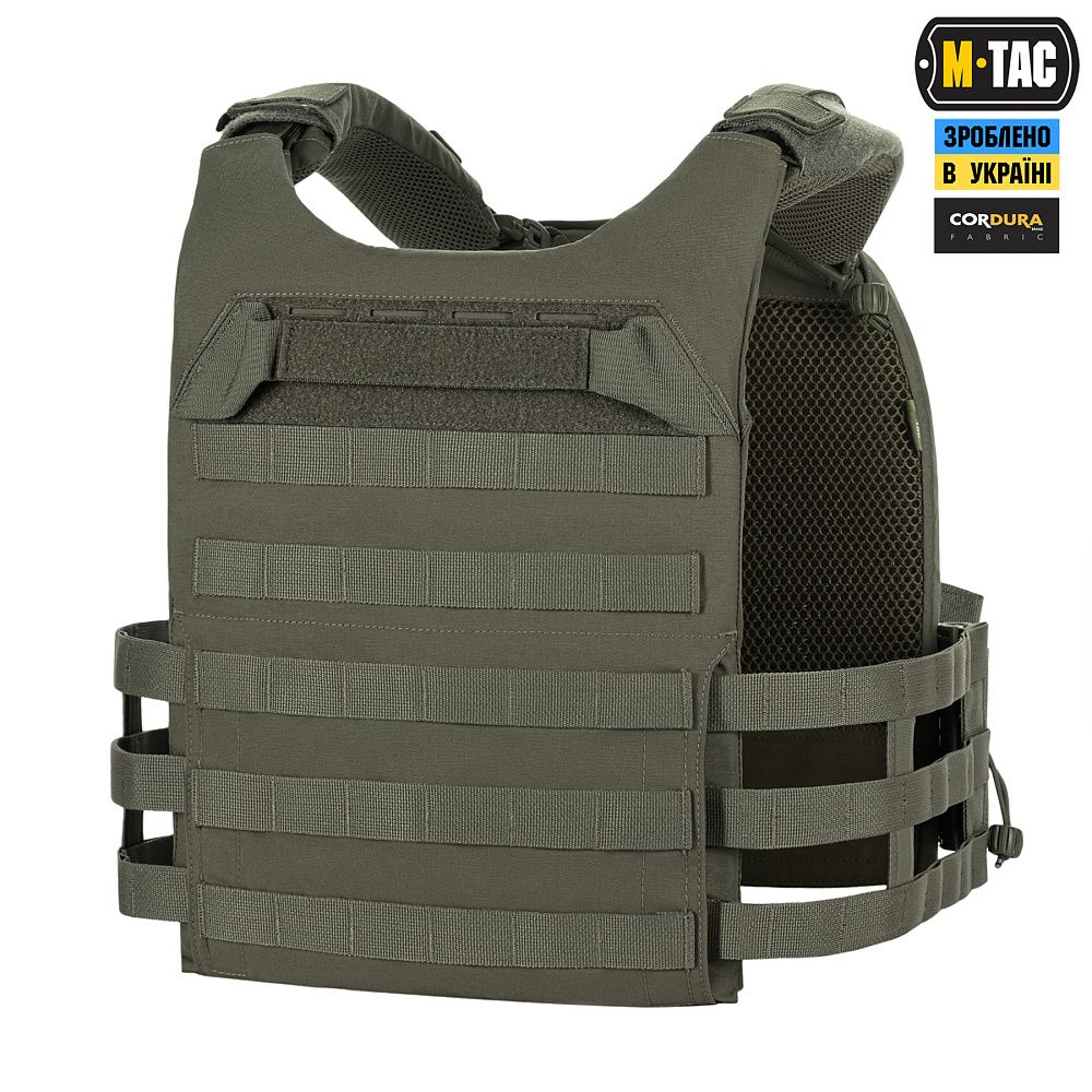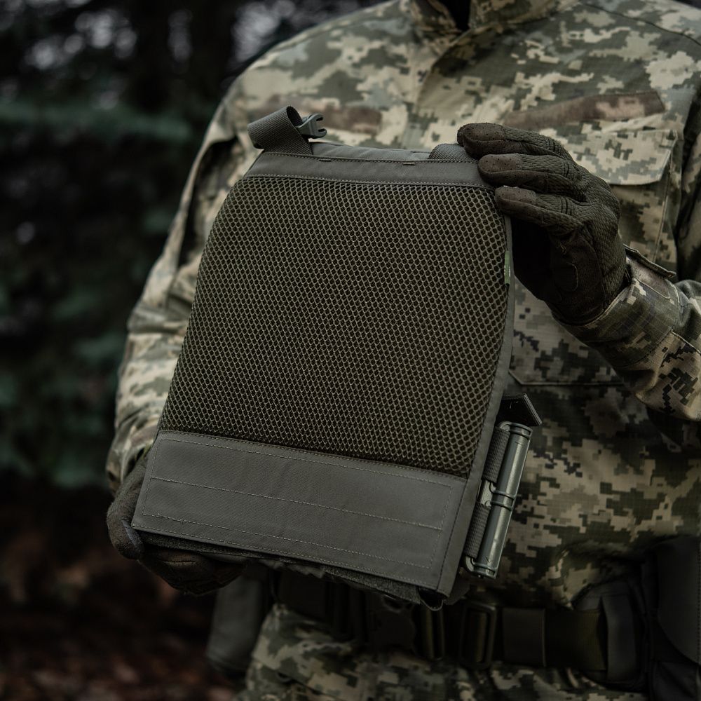 Плитоноска виготовлена з високоякісного матеріалу Cordura 500D – надміцного матеріалу, стійкого до стирання і високих навантажень. З внутрішньої частини є вставки з 3D сітки, які забезпечують амортизацію та циркуляцію повітря. Ергономічні плечові лямки зручні у використанні й органічно повторюють контури тіла. Скелетоподібний камербанд значно зменшує вагу виробу і при необхідності дозволяє розмістити підсумки.