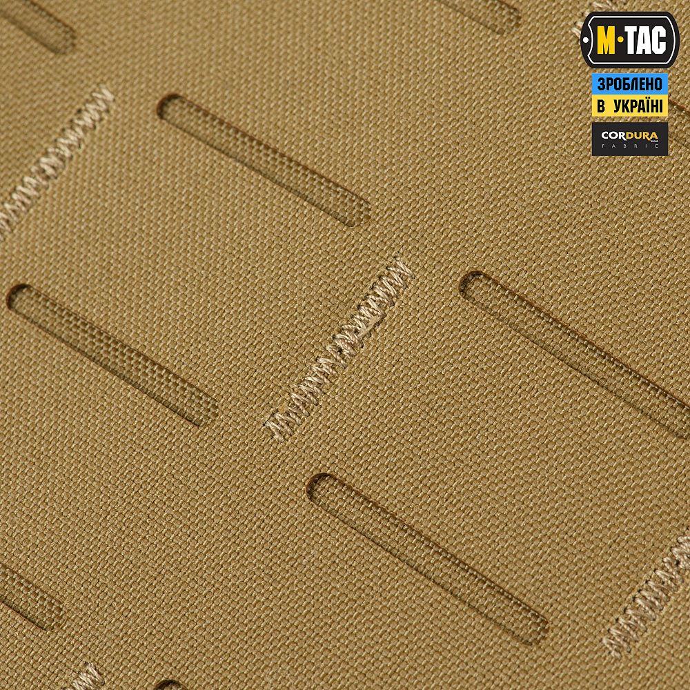 Нове покоління M-Tac плитоноски Cuirass Fast QRS оснащене спеціальною Molle панеллю, що дозволить розмістити підсумки, кобури, аптечки, органайзери та інше спорядження. Щоб уникнути випадкового зривання з основи Velcro, вона кріпиться до строп на плитоносці за допомогою карабінів Woojin.