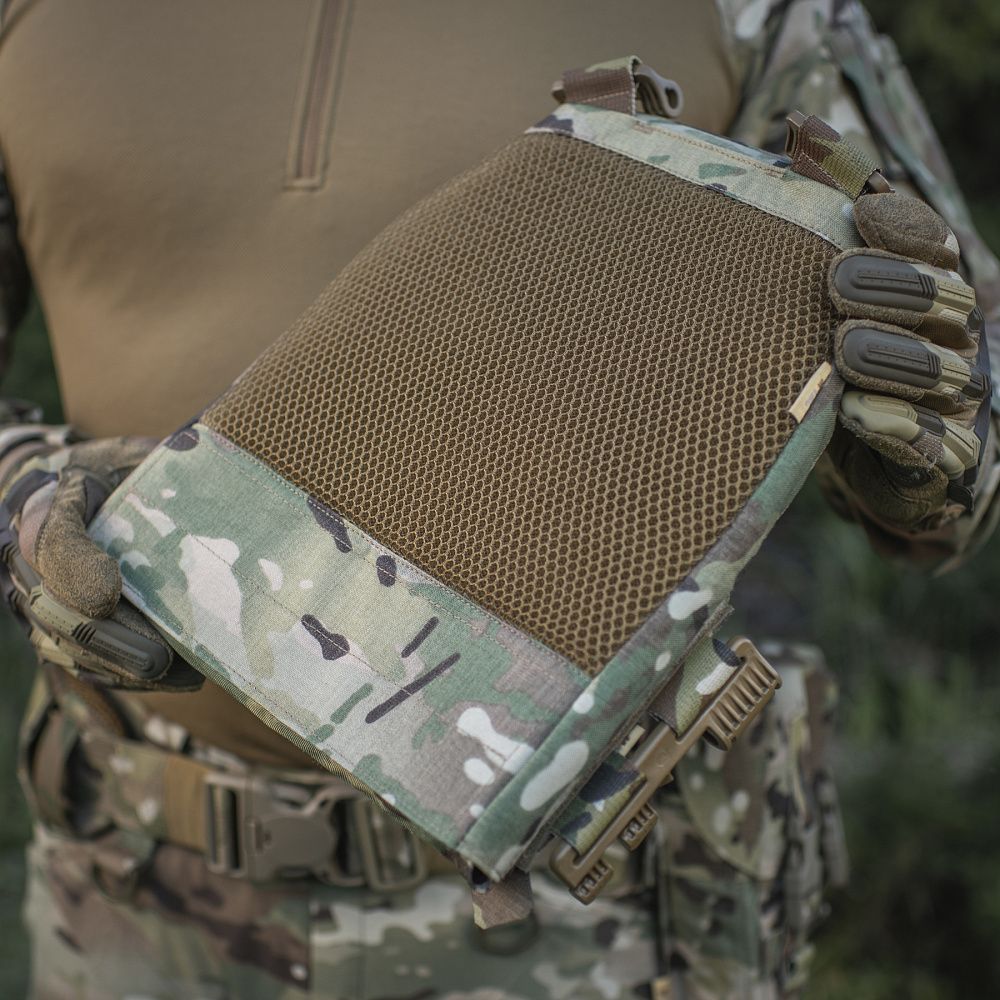 Плитоноска виготовлена з високоякісного матеріалу Cordura 500D – надміцної тканини, стійкої до стирання і високих навантажень. З внутрішньої сторони є вставки з 3D сітки, які забезпечують амортизацію та циркуляцію повітря. Ергономічні плечові лямки зручні у використанні й органічно повторюють контури тіла. Скелетоподібний камербанд значно зменшує вагу виробу і при необхідності дозволяє розмістити підсумки.