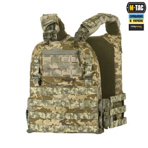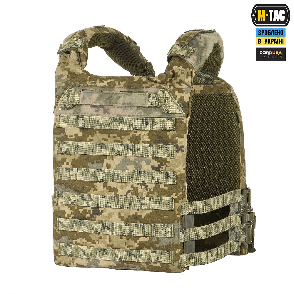 Плитоноска виготовлена з високоякісного матеріалу Cordura 500D – надміцної тканини, стійкої до стирання і високих навантажень. З внутрішньої сторони є вставки з 3D сітки, які забезпечують амортизацію та циркуляцію повітря. Ергономічні плечові лямки зручні у використанні й органічно повторюють контури тіла. Скелетоподібний камербанд значно зменшує вагу виробу і при необхідності дозволяє розмістити підсумки.